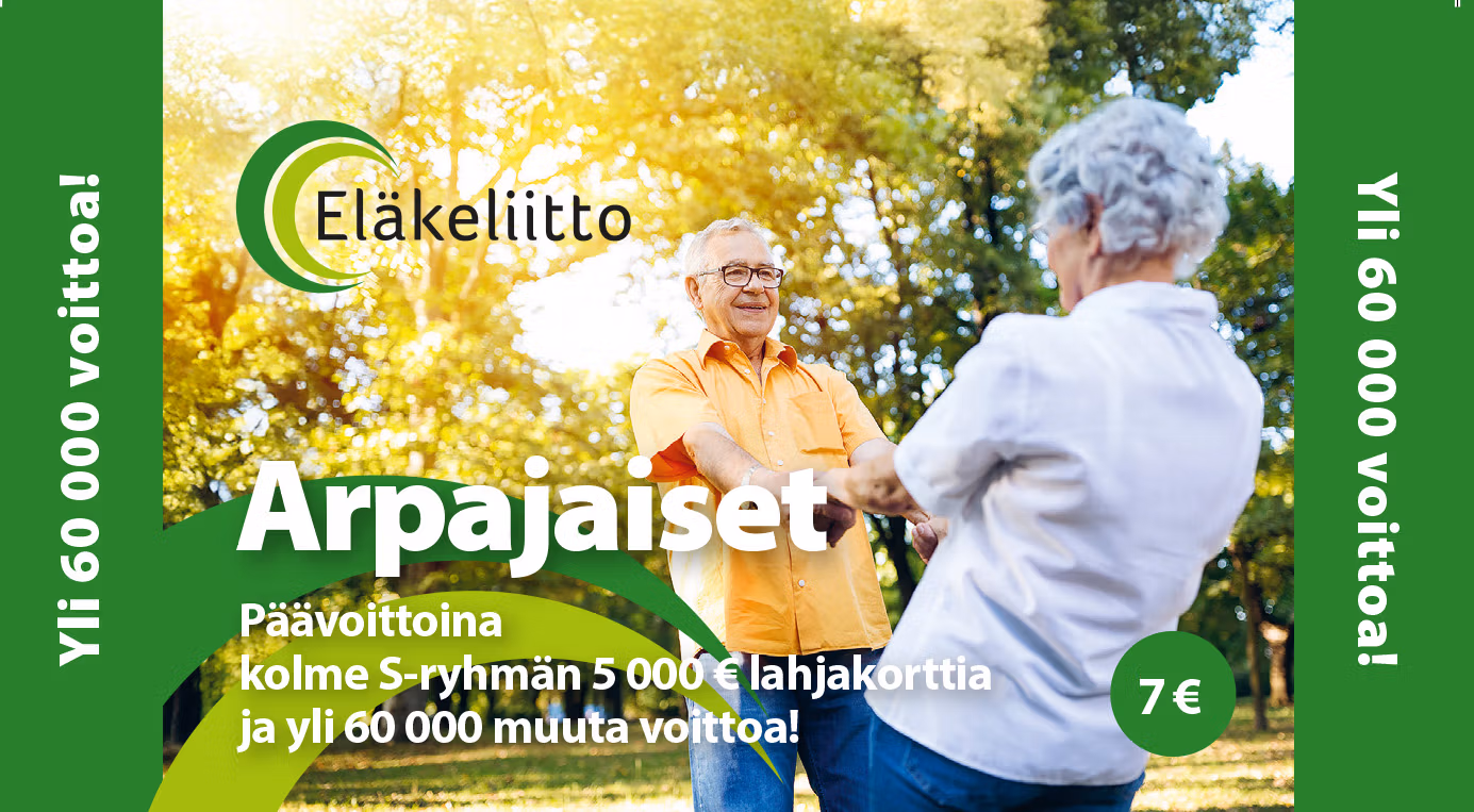 Yhden arvan hinta on 7 euroa. Ostamalla arpoja et vain osallistu arvontaan – olet mukana rakentamassa yhteiskuntaa, jossa ikä ei määritä arvoa.