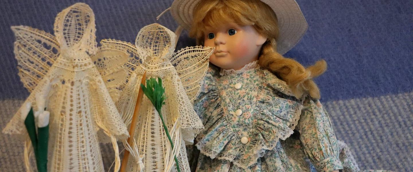 Upeat enkelit ovat olleet taidenäyttelyssä mukana.