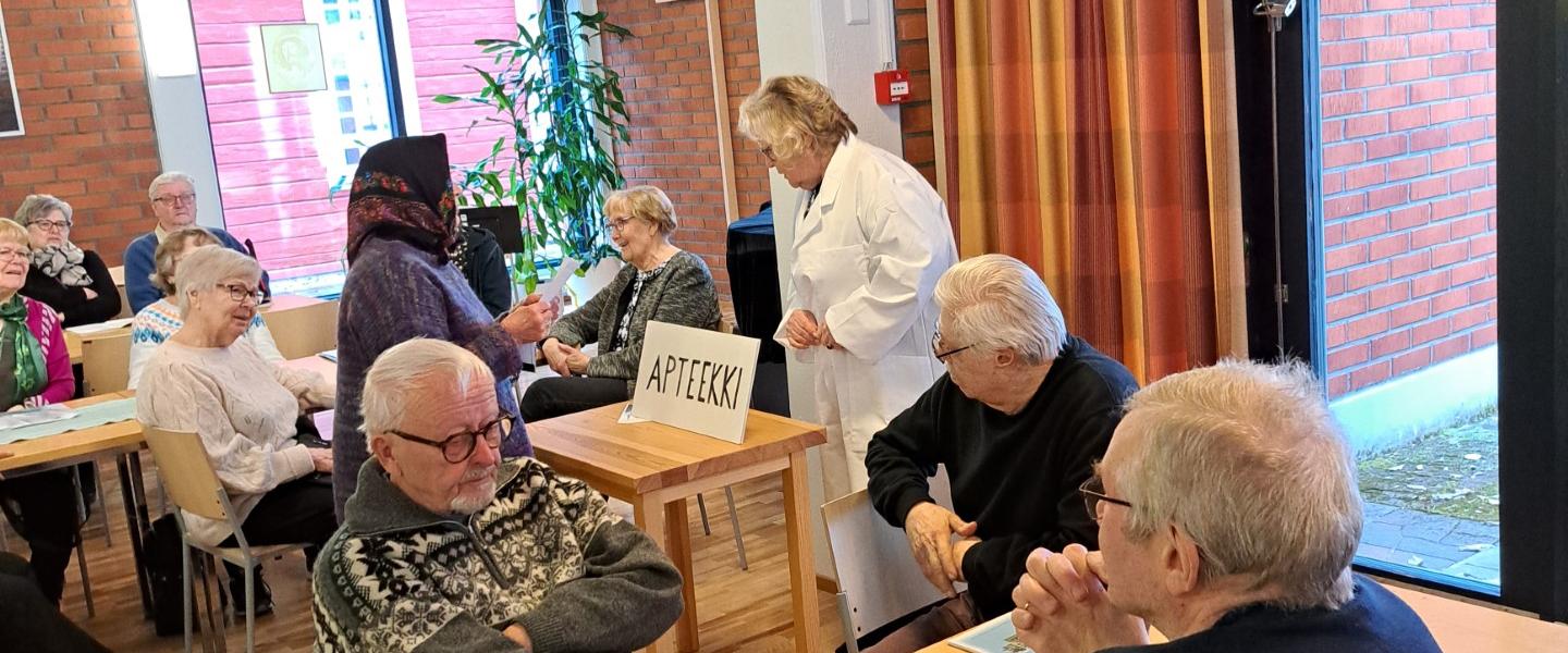 Kerhotapaamisen yhteydessä Tervakoskella oli Tervakosken kirkon esittelytilaisuus ja näytelmäryhmän esitys. 90-vuotias mummo oli menossa naimisiin ja mietti häälahjatoiveita apteekista.