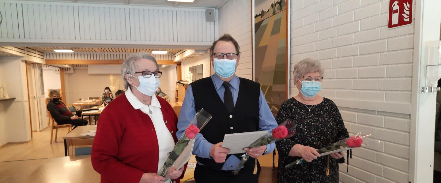 Merkkien jakajina toimivat Eläkeliiton valtuuttamana piirin puheenjohtaja Pirjo Palosaari-Penttilä, toiminnanjohtaja Taina Alanko ja EL Lohtajan yhdistyksen uusi, vuoden 2021 alusta aloittanut pj. Heikki Sinko.