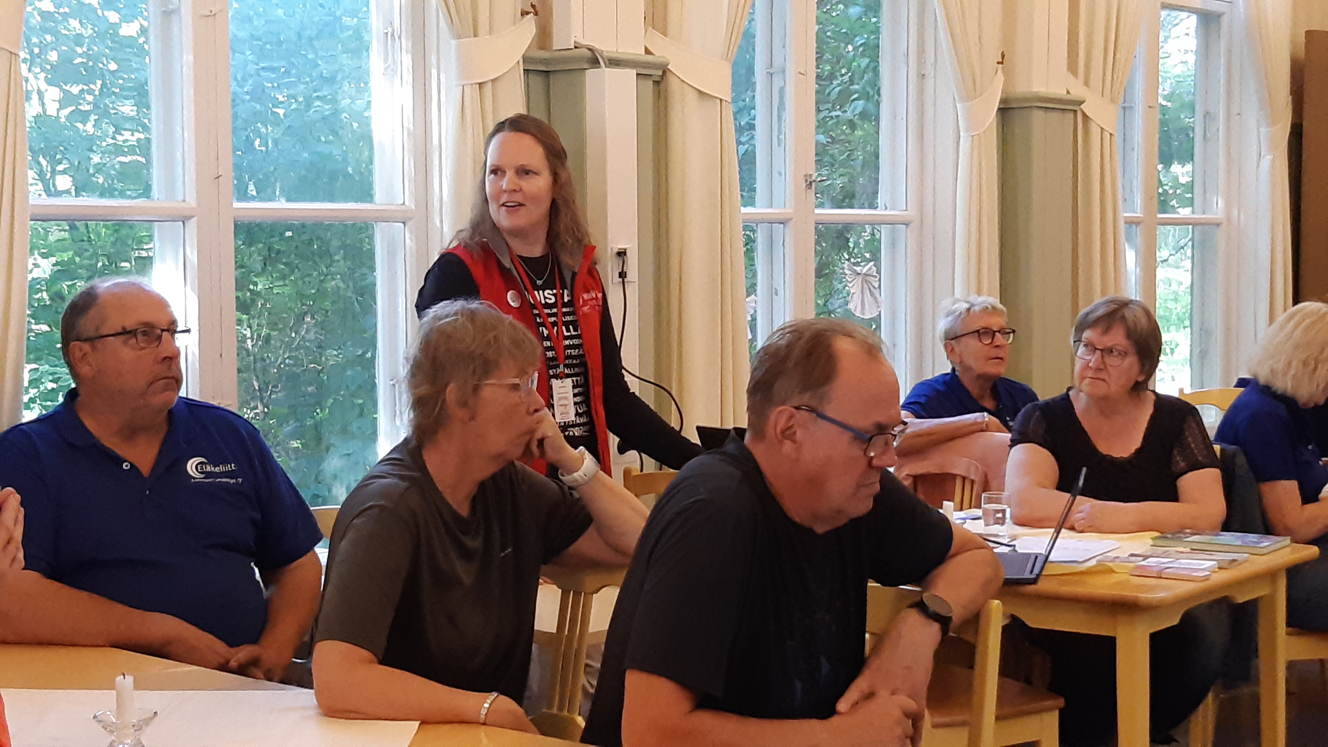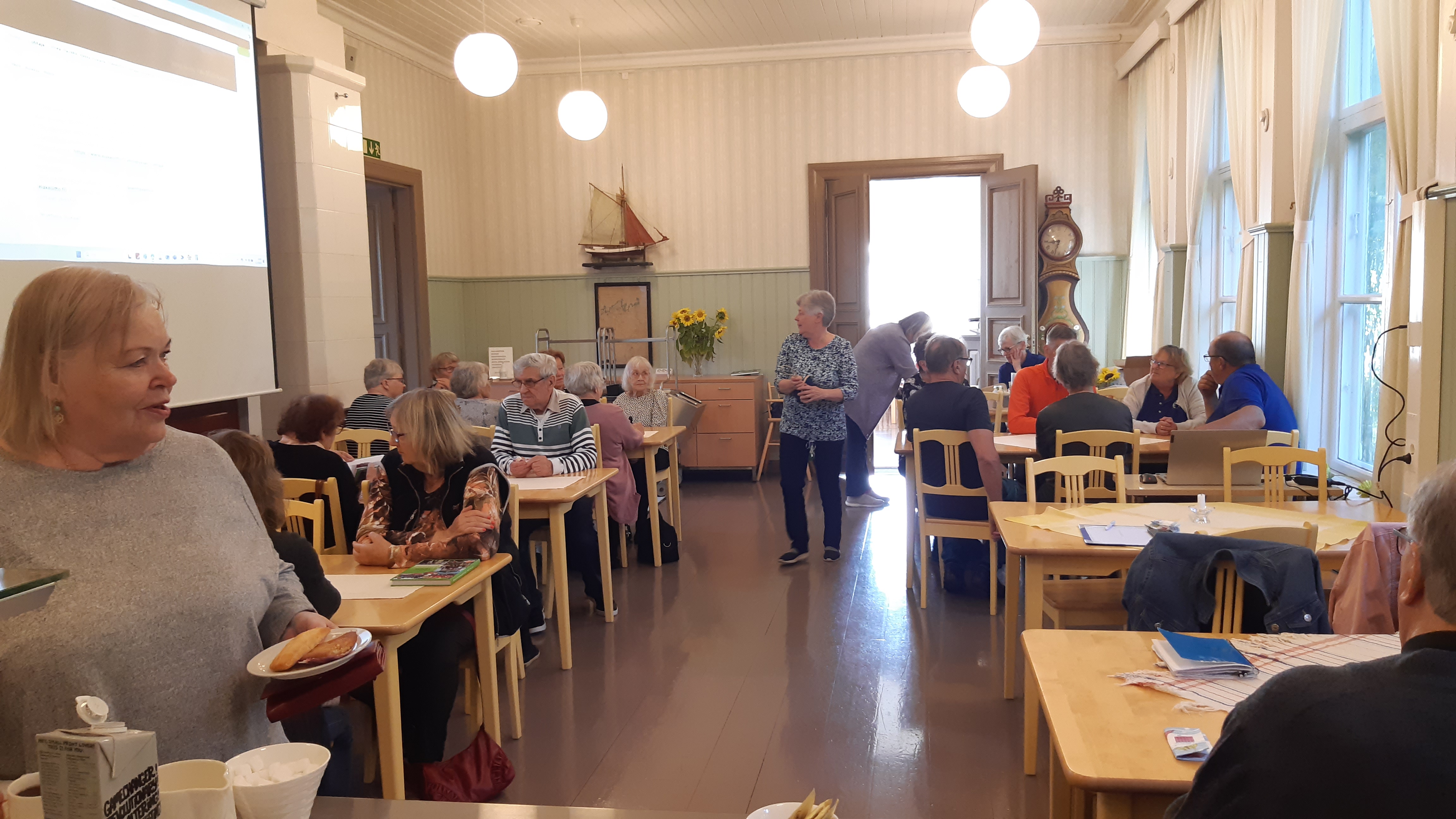 8.5. Kevään viimeinen seniorikaffi tilaisuus, kova oli puheenporina ennen kun päästettiin Soiten kuntoutusohjaaja Marianne Form kertomaan kuulon ja näön heikkenemisen vaikutuksista ja niihin saatavilla olevista avuista ja apuvälineistä. Saatiin taas hyvää ja tarpeellista tietoa ja koko tilaisuudesta ja osallistujista mielenvirkeyttä. Kesää odotellen ja syksyllä taas jatketaan seniorikaffeja. Kesällä tavataan liikunnan ja retkien merkeissä.
