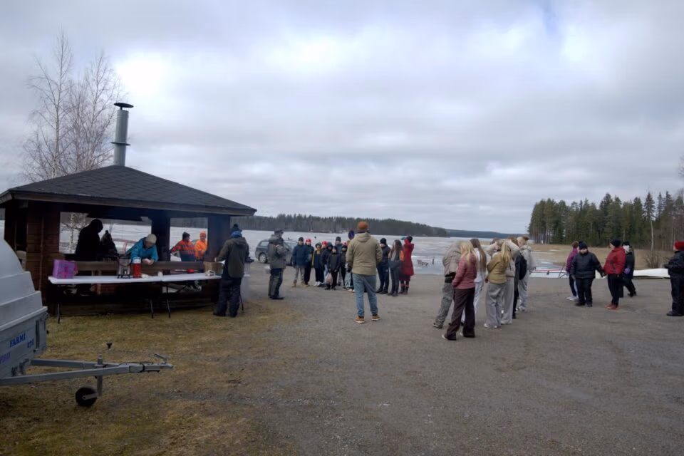 – Ihan lekkonen keli, aurinko paistoi ja puolipilvinen taivas. Ainut mikä oli, että ei päästy jäälle pilkkimään. Ei se haitannut, kyllä se kovasti innosti porukkaa.