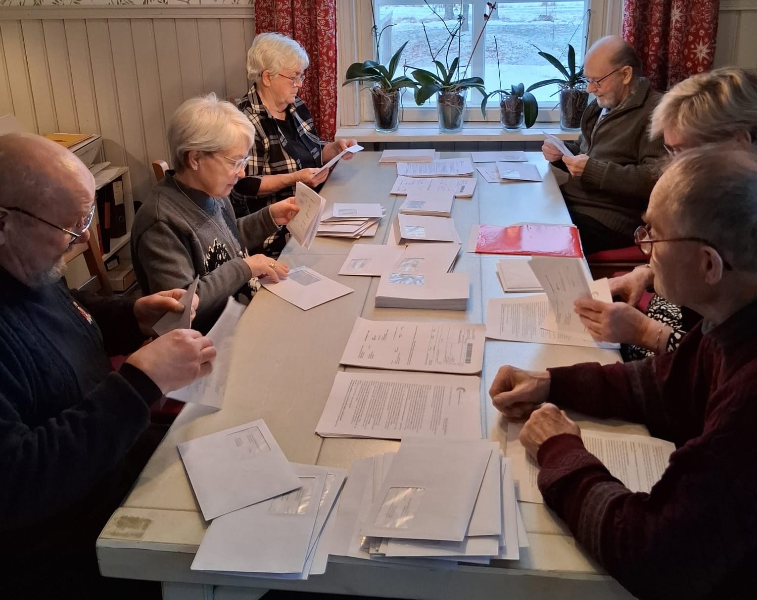 Hallituksen jäsenet ovat talkoilla taitelleet jäsenkirjeitä ja vieneet niitä jäsenten postilaatikoihin.