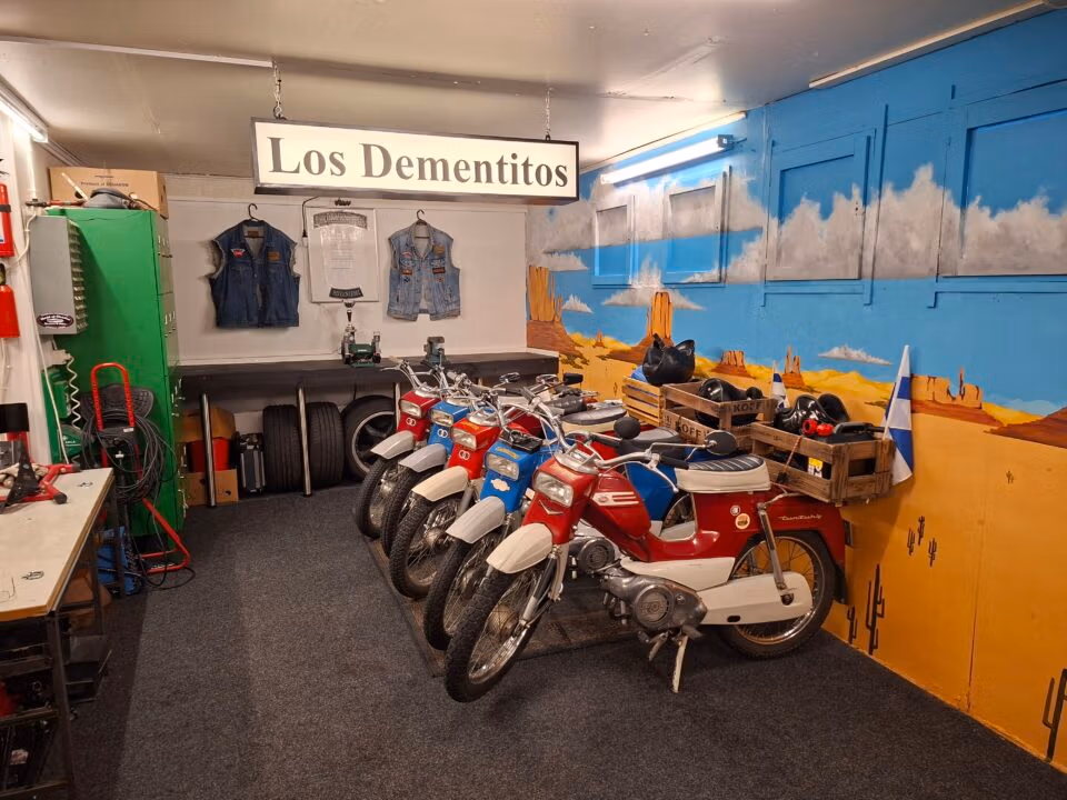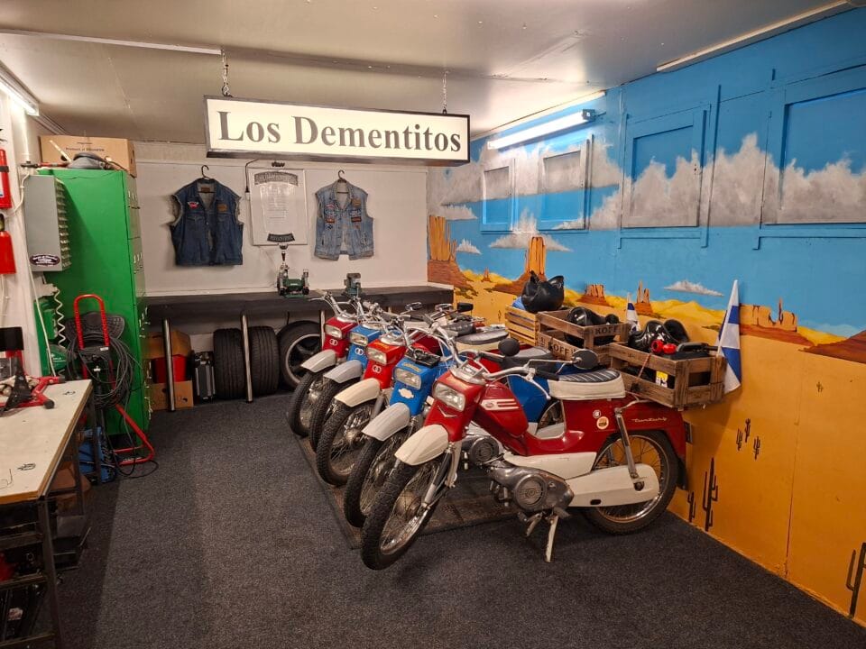 Syksyn ja talven aikana Los Dementitosin jäsenet huoltavat ja kunnostavat mopojaan tulevaa kesää varten.