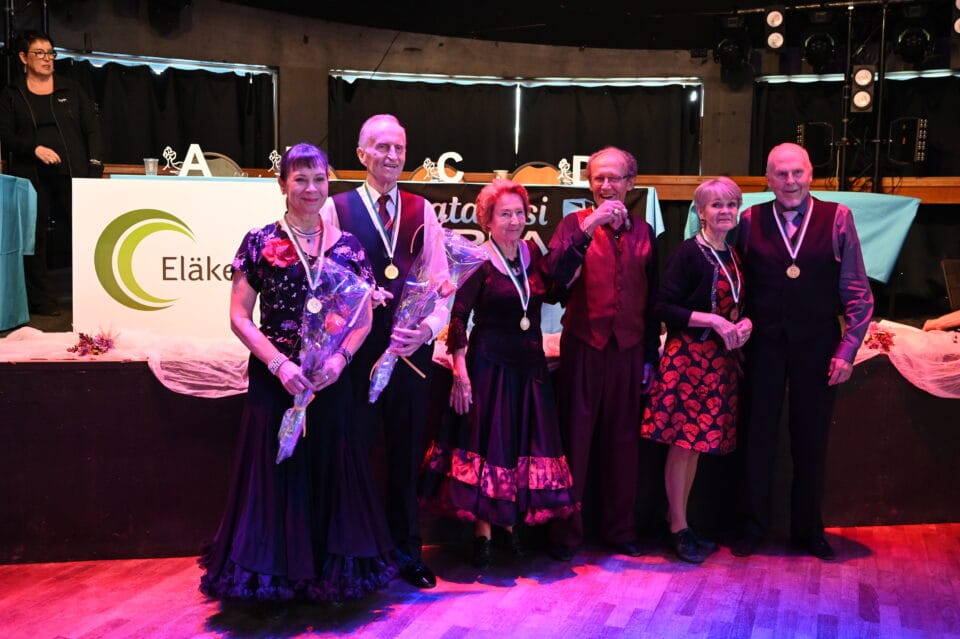 Sarjan 131-140 palkitut. Vasemmalla voittajapari Erkki Hautaniemi – Anneli Hautaniemi.