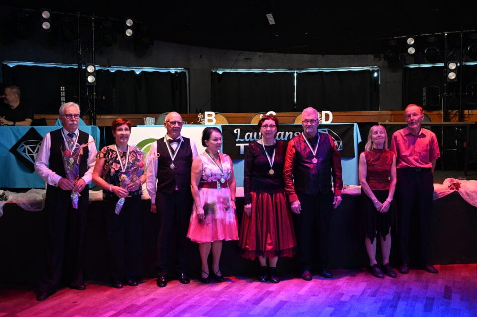 Sarjan 151 ja yli palkitut. Vasemmalla voittajapari Kari Kuokkanen – Irmeli Torkkeli.