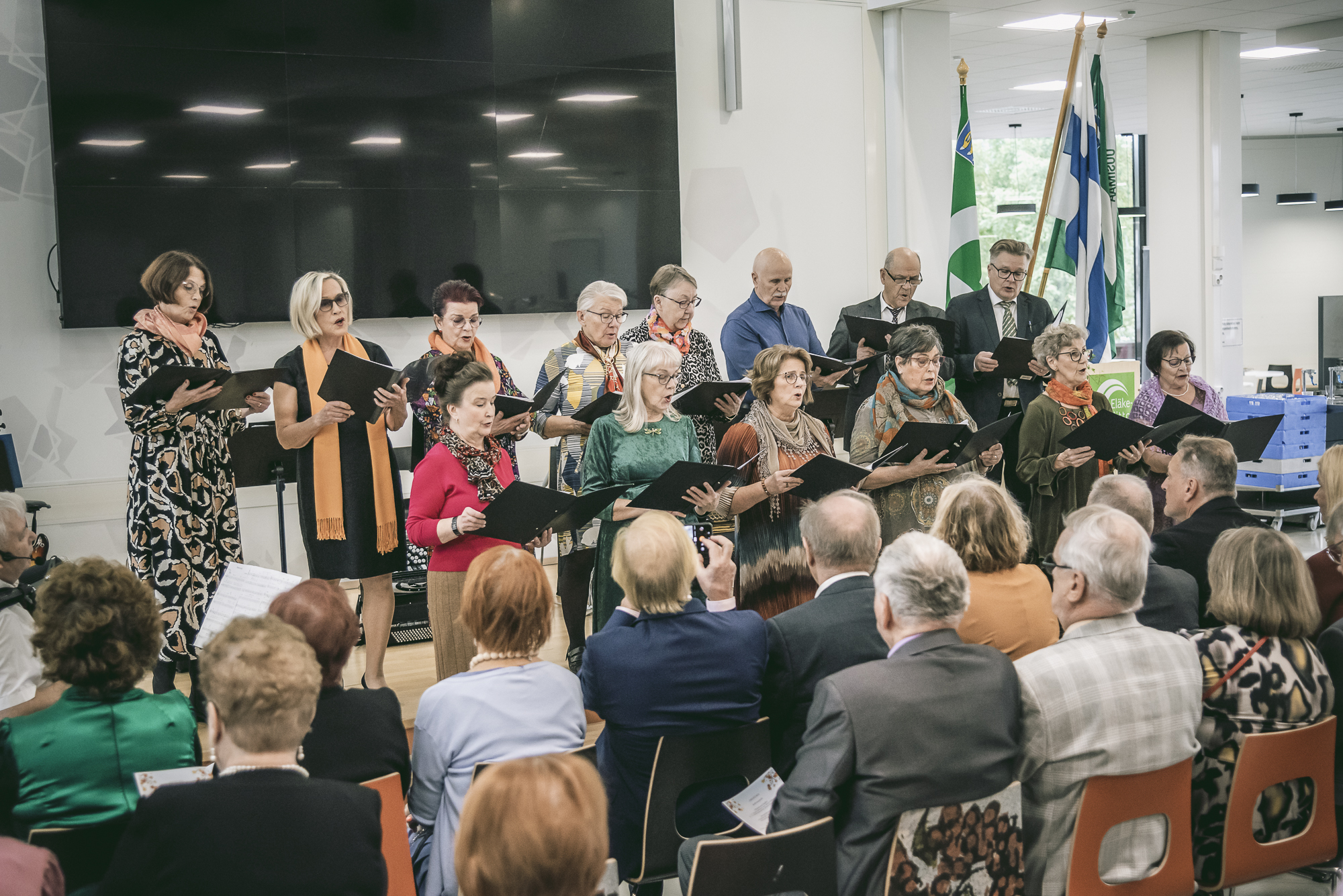 Tilaisuuden juontajana toimi leppoisaan tyyliin Mauri Tallberg. Mauri myös säesti ja johti lauluryhmäämme, joka avasi tilaisuuden Rauno Lehtisen sävellyksellä "Muuttuvat laulut".