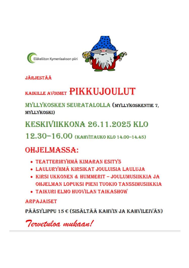 https://www.elakeliitto.fi/piirit/kymenlaakso/piirin-pikkujoulut-26112025?delta=0 Linkki Piirin pikkujouluilmoitukseen