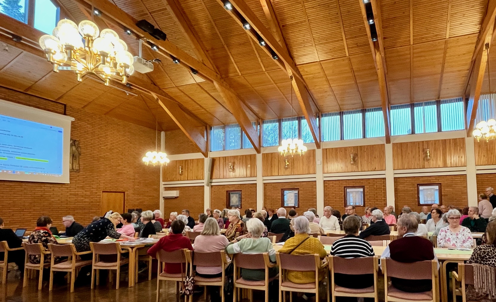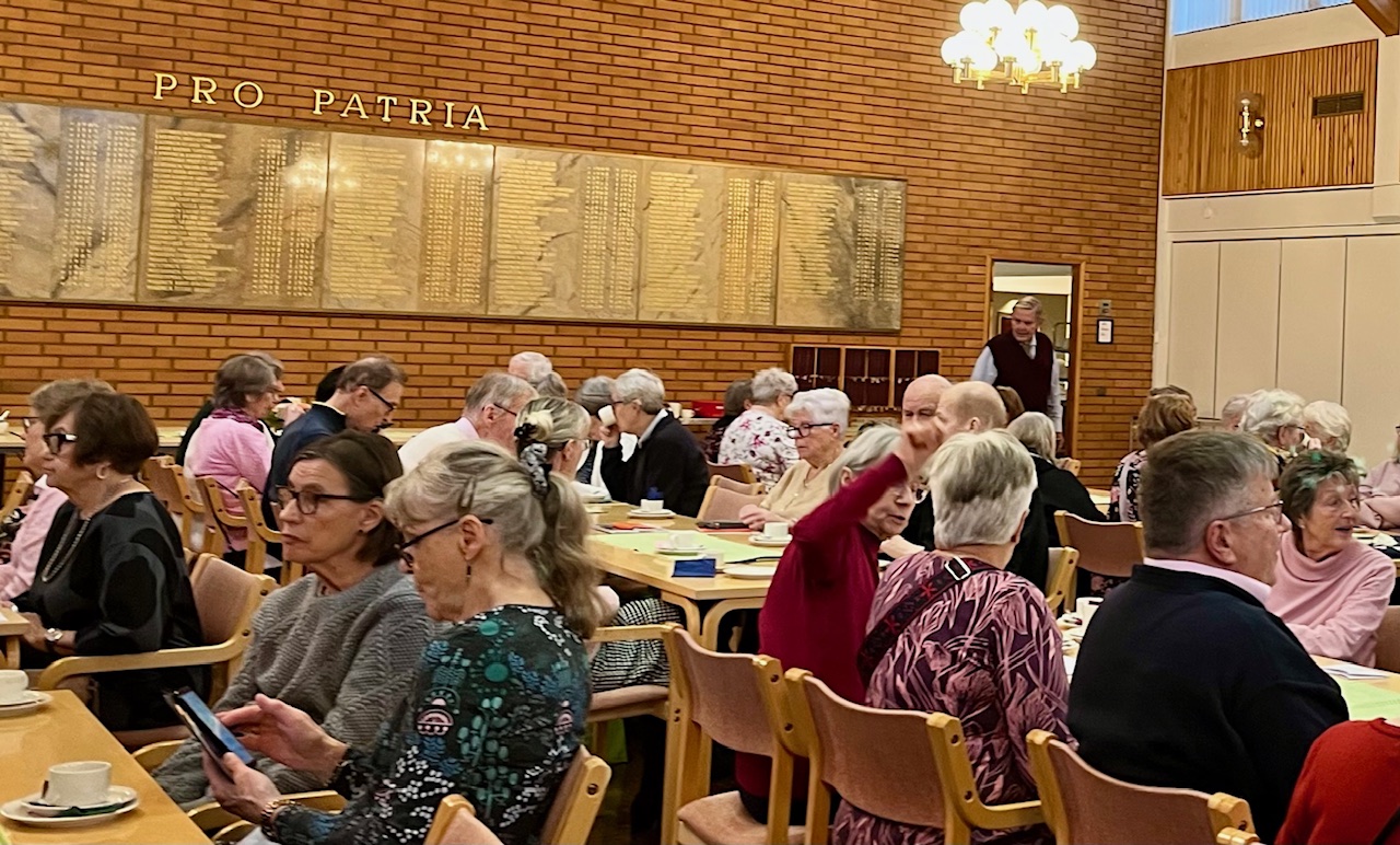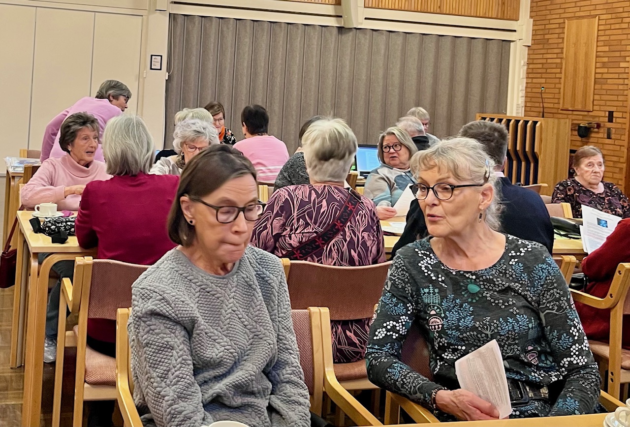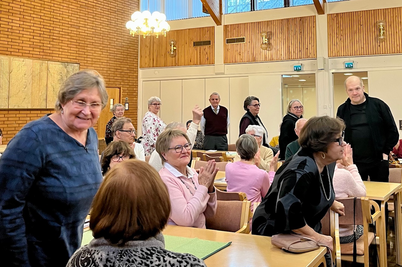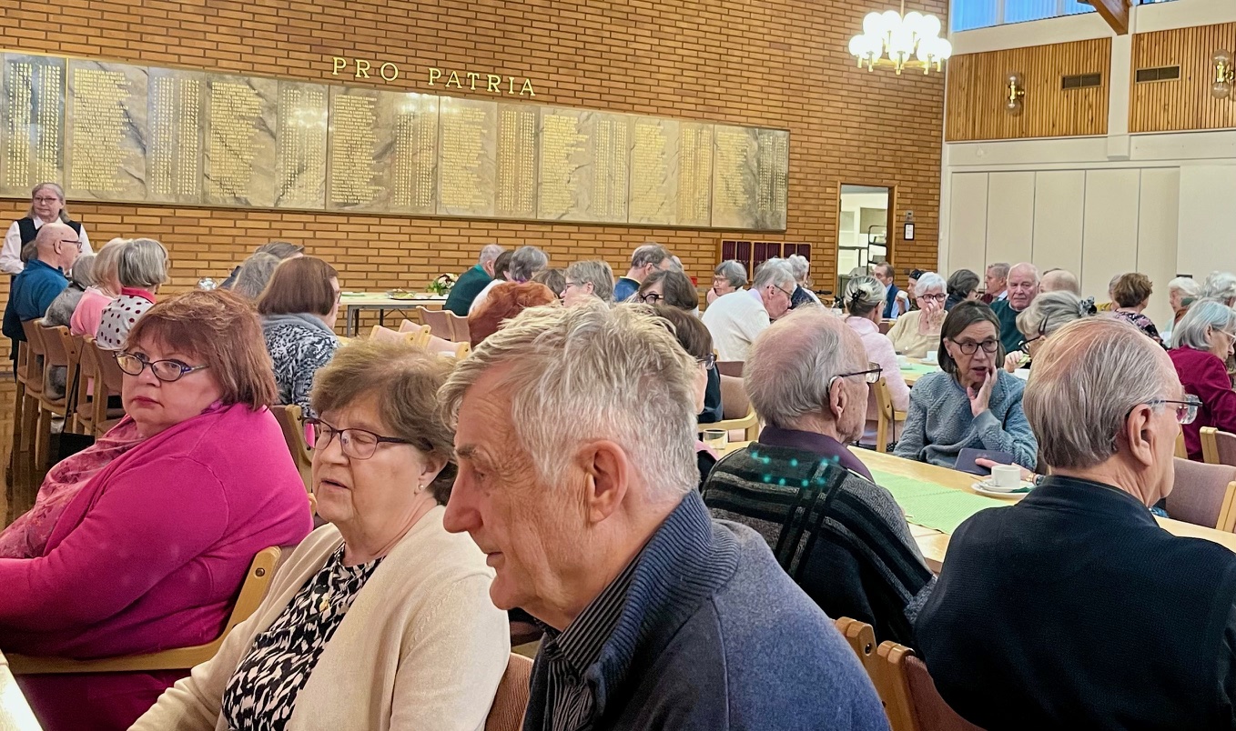 Lokakuun kuukausikerho, uusien jäsenten tilaisuus, yhdistyksen syyskokous sekä Salme Honkalan 90-vuotispäivänsä johdosta tarjoama täytekakku vetivät salin lähes täyteen sateisesta säästä huolimatta.