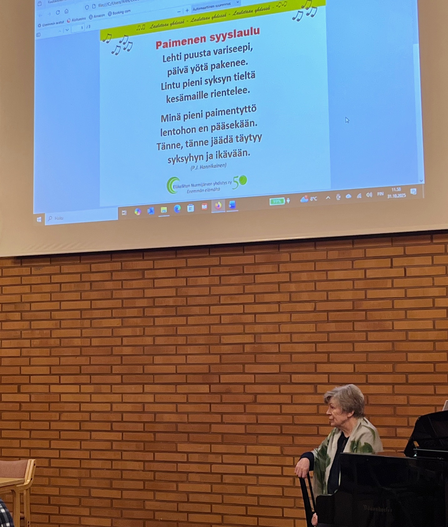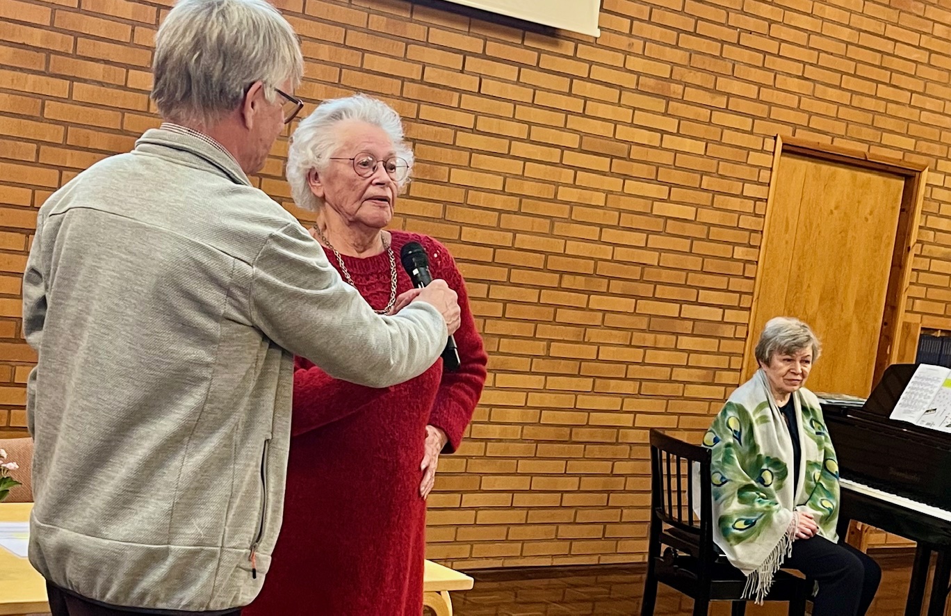 - Saara Vakkilaisen emäntäryhmä oli kattanut pöydän ja valmistanut maittavat voileivät, minkä päälle maistui Salme Honkalan 90-vuotispäivänsä johdosta tarjoama täytekakku. Salmelle laulettiin asiaan kuuluvasti onnittelulaulu Aune Palokankaan säestyksellä. Salme kertoi olleensa jo 30 vuotta yhdistyksen jäsen, ja ahkerasti hän on osallistunut yhdistyksen toimintaan. Onnea, Salme!
