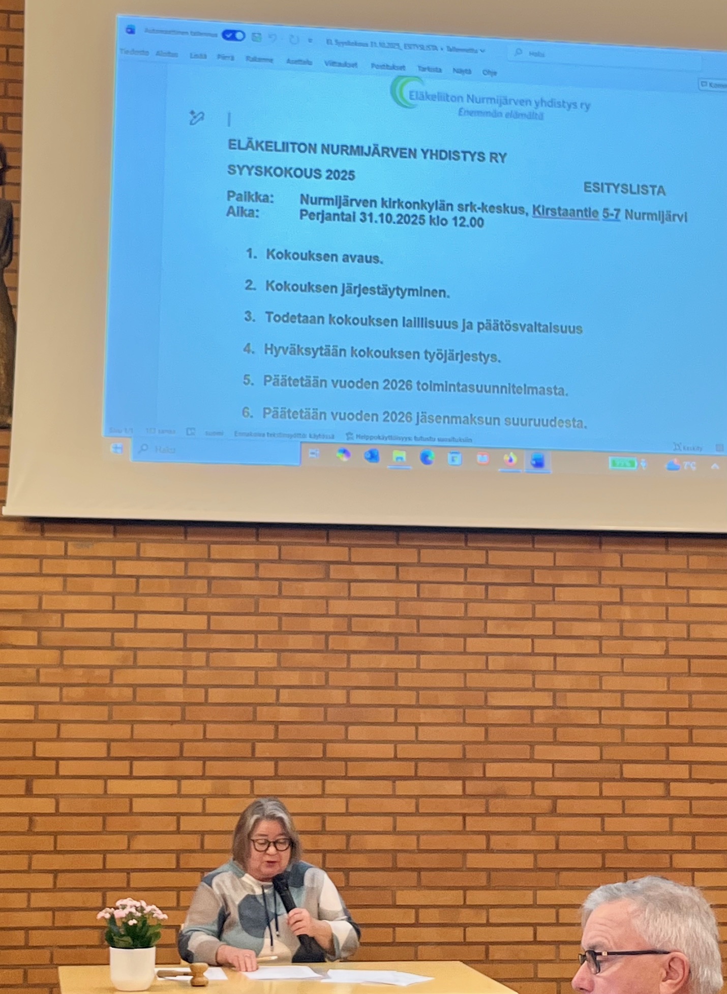 - Margit Taponen toimi syyskokouksen puheenjohtajana.