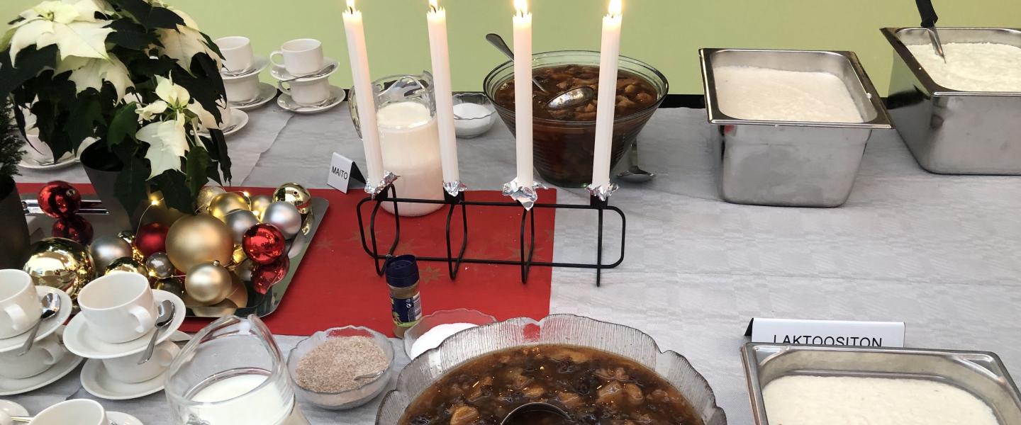 Yhdistyksen puurojuhla pidettiin marraskuun viimeisenä perjantaina. Viime vuonna juhla jäi väliin koronaepidemian vuoksi, eikä peruuntuminen ollut ehkä nytkään kaukana, mutta vahvojen suositusten tottuneina noudattajina onnistuimme viemään tilaisuuden läpi.
