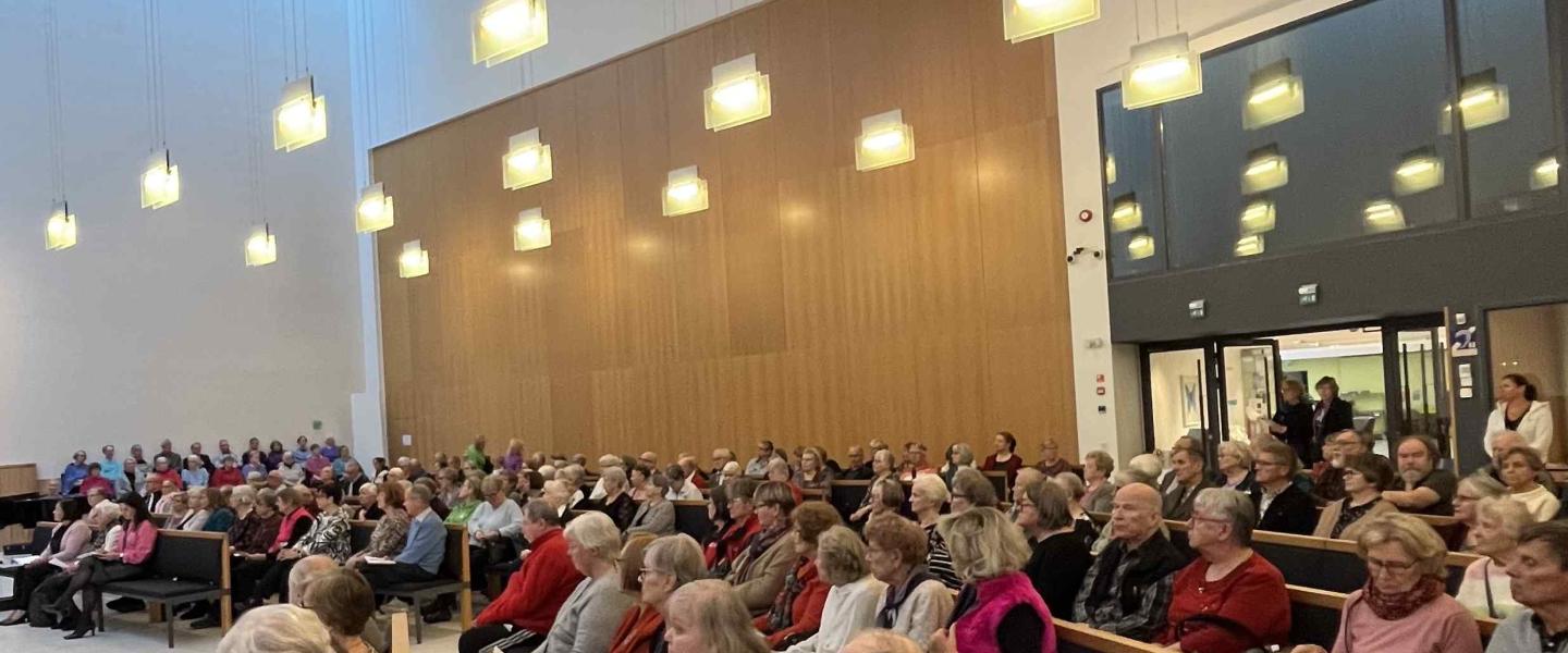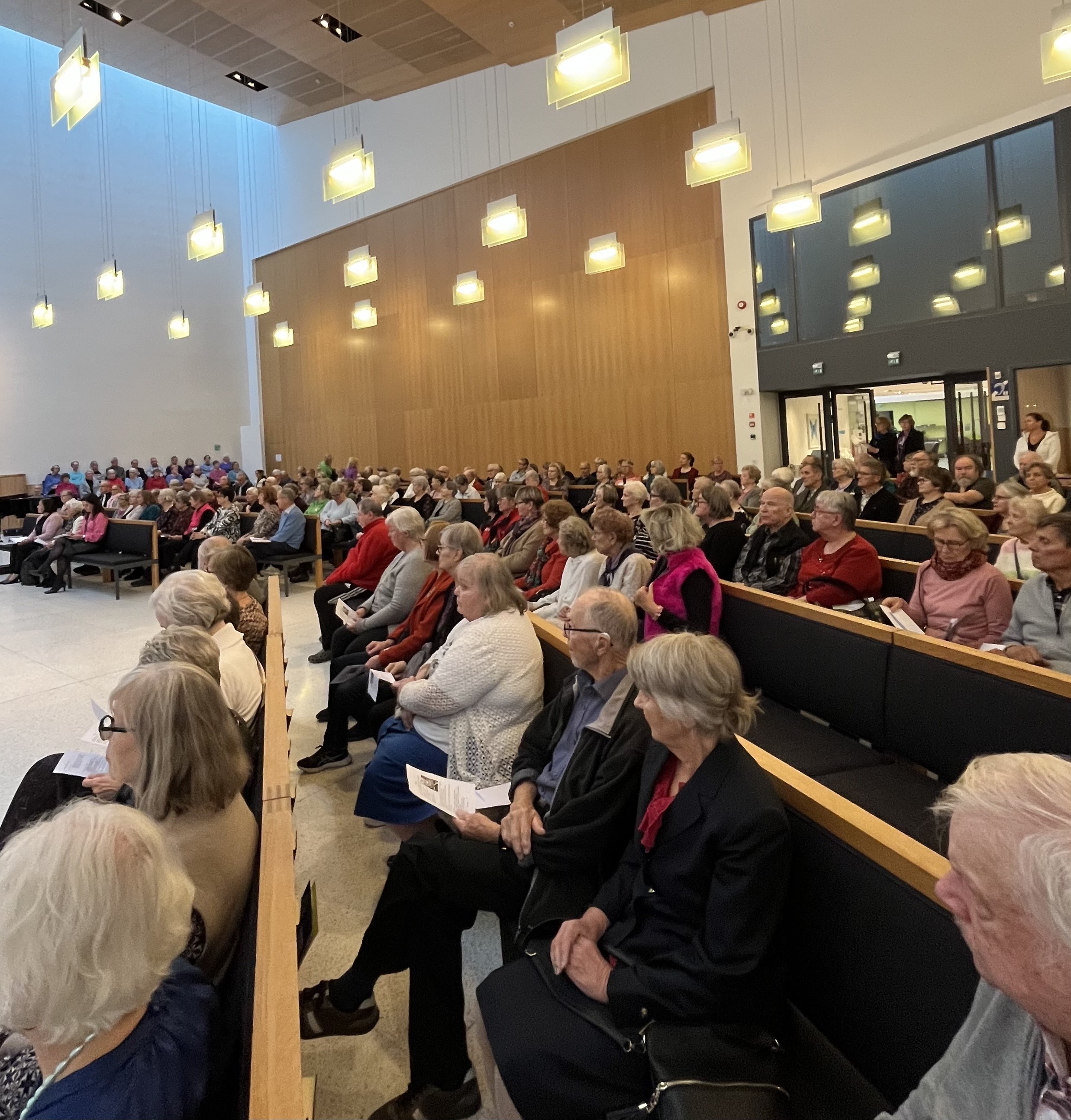Klaukkalan kirkossa pidettiin jälleen vanhustenviikon Nurmijärven pääjuhla. Parkkipaikka täyttyi, ja Korsisaaren bussit kuljettivat juhlaväkeä Rajamäeltä ja Kirkonkylältä sateisessa säässä.