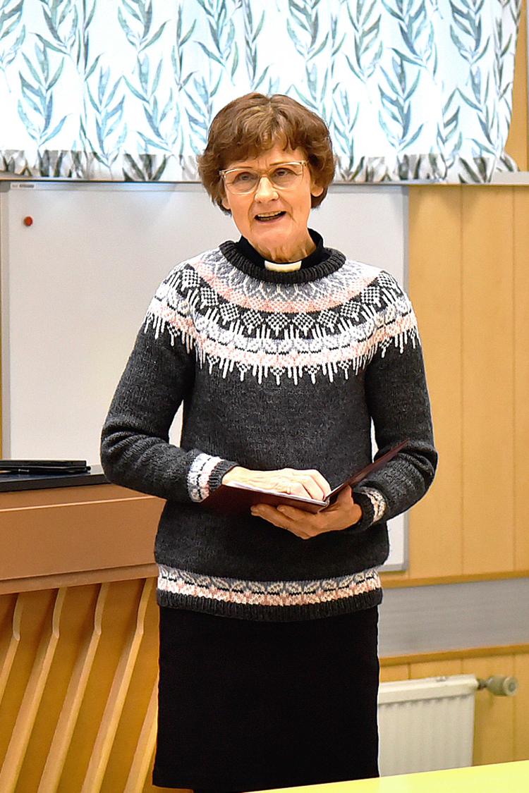 Puhumassa kappeliseurakunnasta kappalainen Tarja Takala-Luostarinen.
