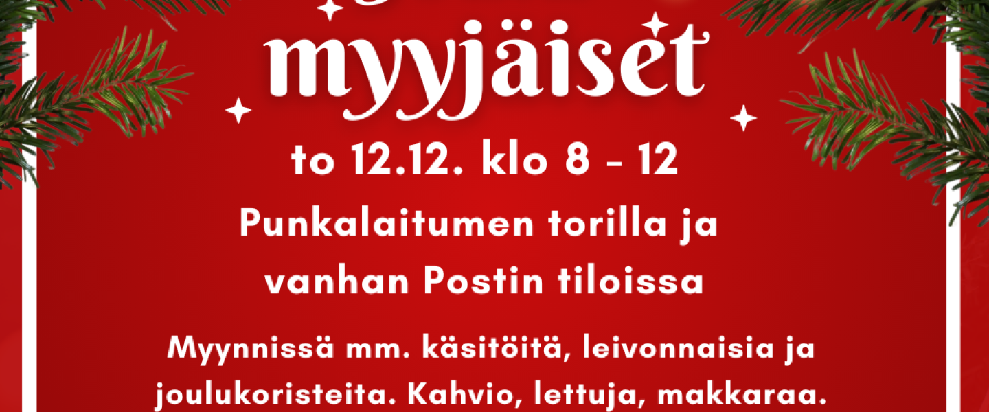 Myynnissä mm. käsitöitä, leivonnaisia ja joulukoristeita. Torikahvio ja tarjolla myös lettuja ja makkaraa.