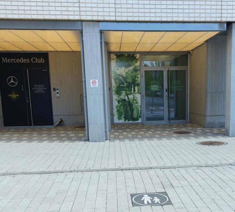 Sisäänkäynti on stadionin Salhojankadun puoleiselta sivulta. Sama sisäänkäynti mistä joukkueet menevät stadionille. Ohjaaja käy avaamassa ovea muutama minuutti ennen vuoron alkamista.