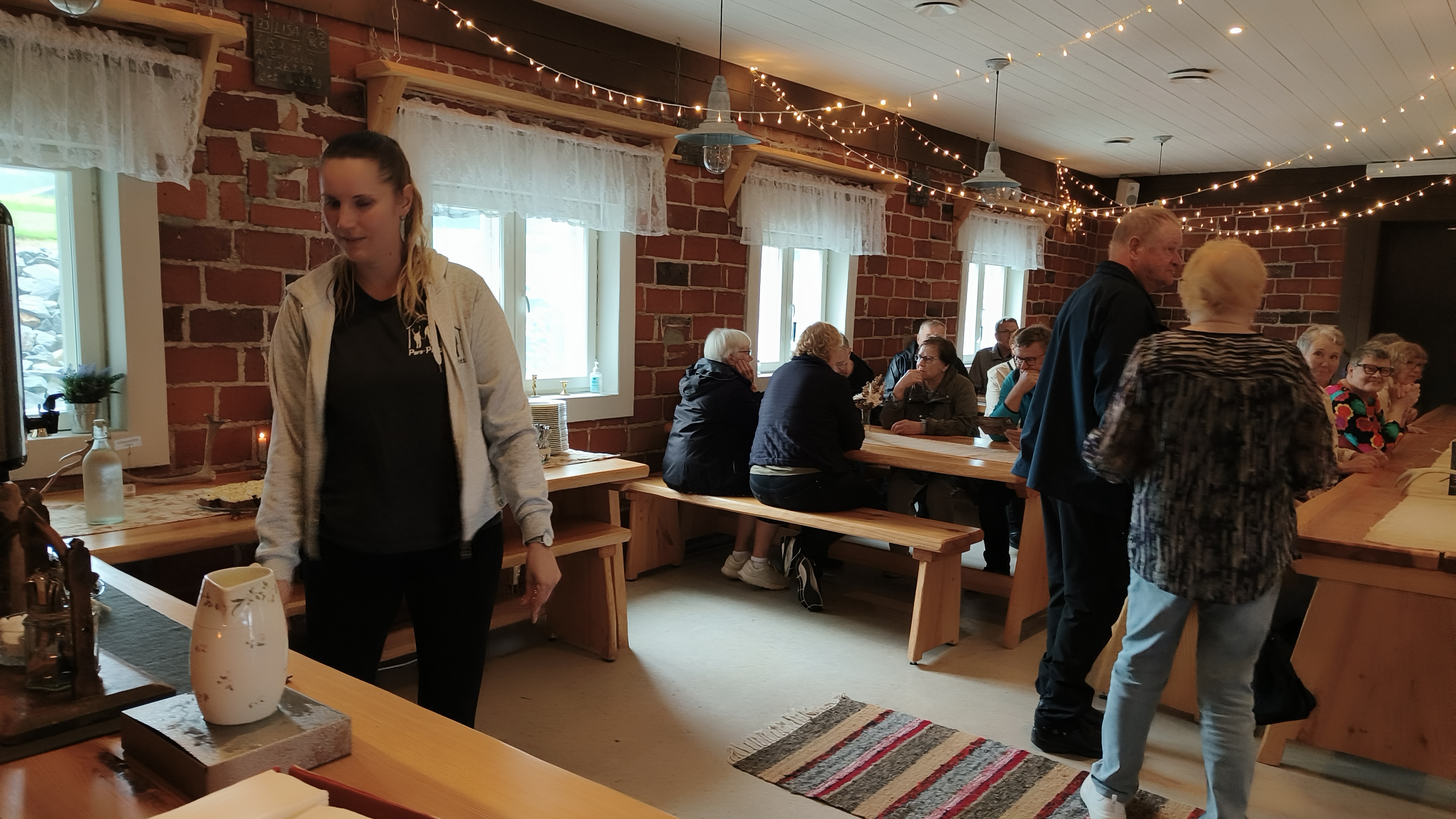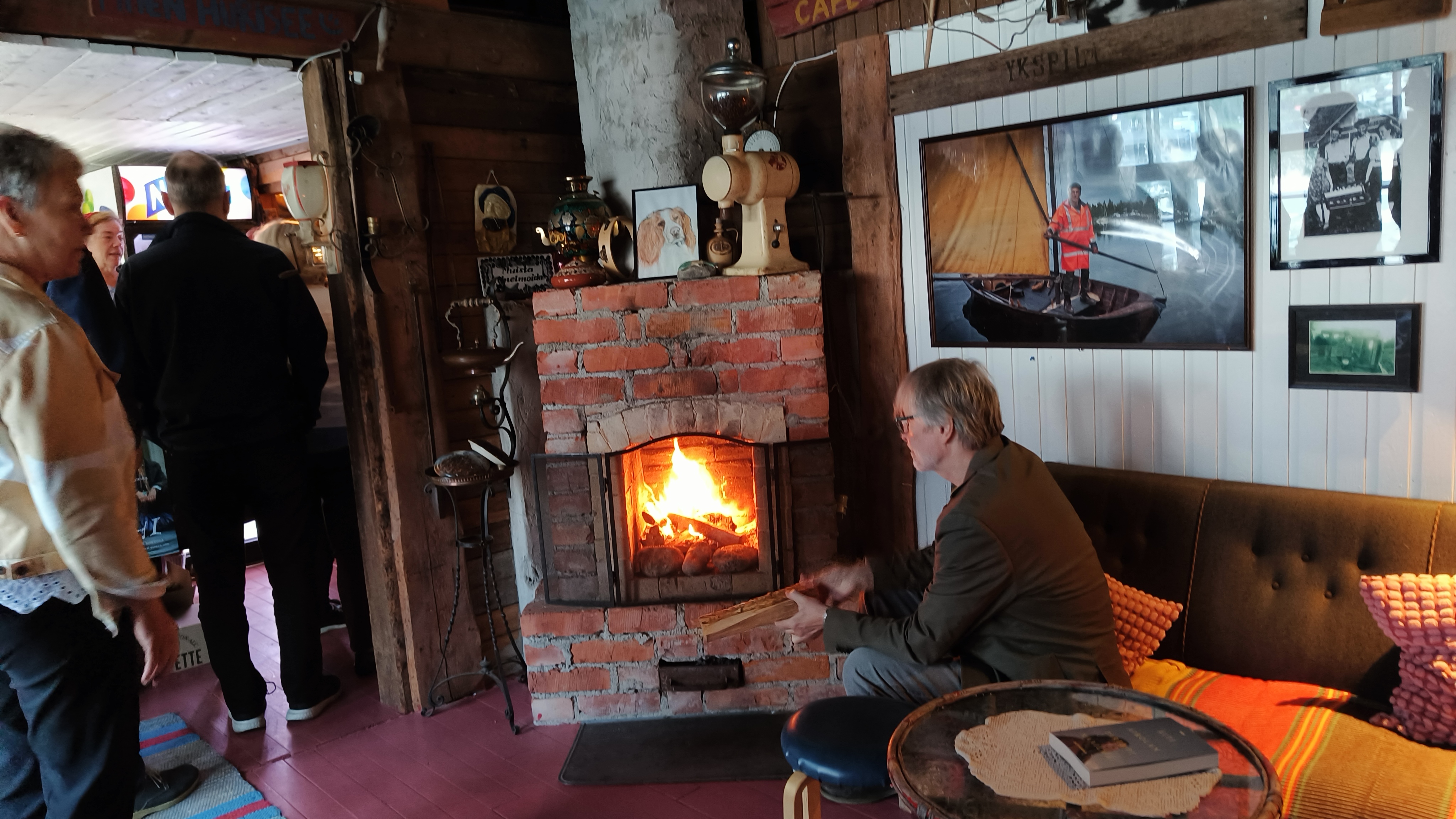 Sateisessa säässä matkattiin kohti Kokkolaa ja Ykspihlajaa. Ensimmäinen yllätyksellinen pysähdys oli Kahvila Saha Ykspihlajassa jossa meille oli luvassa Outi Airolan aamupala. Voi ihmettä minkälainen paikka sieltä löytyi ja todellinen aamupala: mm. karjalanpiirakat ja munavoi, saaristolaisleipää lohella, salamipiirakkaa. Lisäksi smoothit sekä kaffit omenapiirakan ja vanilijakastikkeen kera.