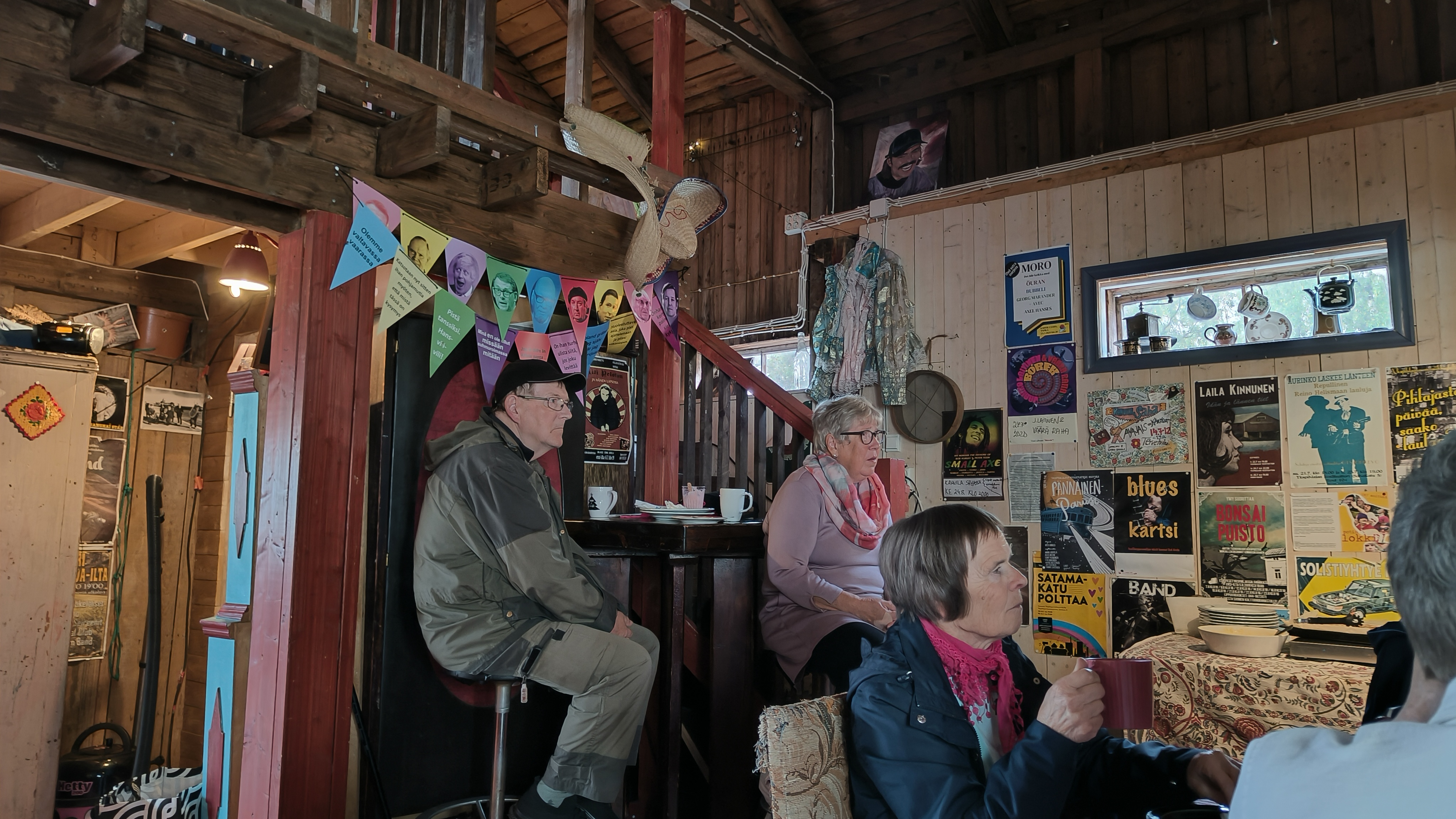 Kun tästä selvittiin Outi kertoi valtavasta työstä mitä ovat tehneet Ykspihlajan ja Kahvila Sahan eteen. Salissa oli esitetty näytelmiä, pidetty konsertteja, runoiltoja ja paljon paljon muuta. Ulkona oli lisäksi kesäteatteriareena, Mikon sauna...