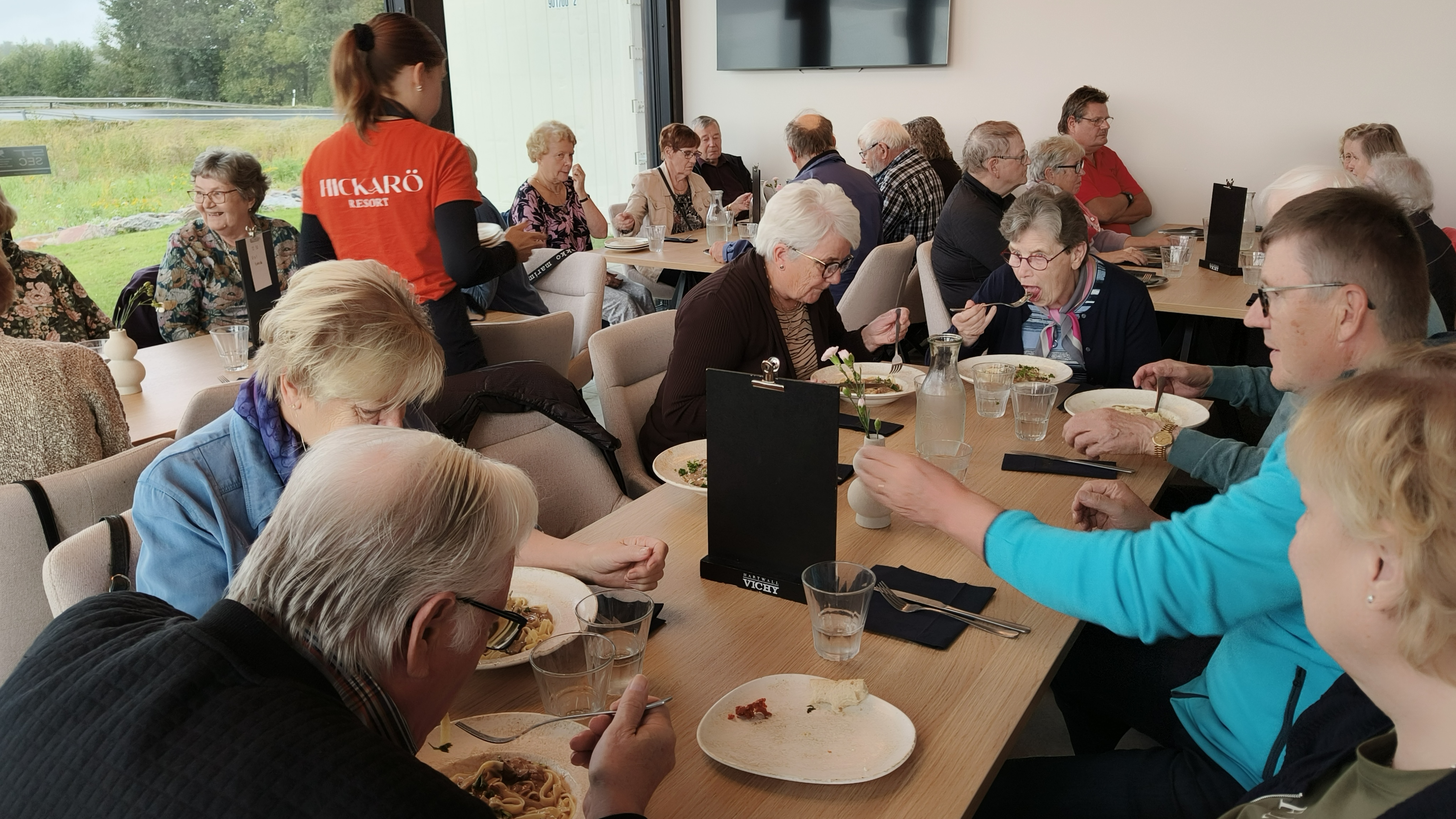 12 jälkeen suunnattiin sitten kohti Hickaröä jossa meille oli luvassa lounasta: salaattiannos, herkkusienipekonipastaa jota oli vähän haasteellista syödä ja monia mielipiteitähän tämä jakoi. Päälle vielä kaffit Marianne-karkin kera.