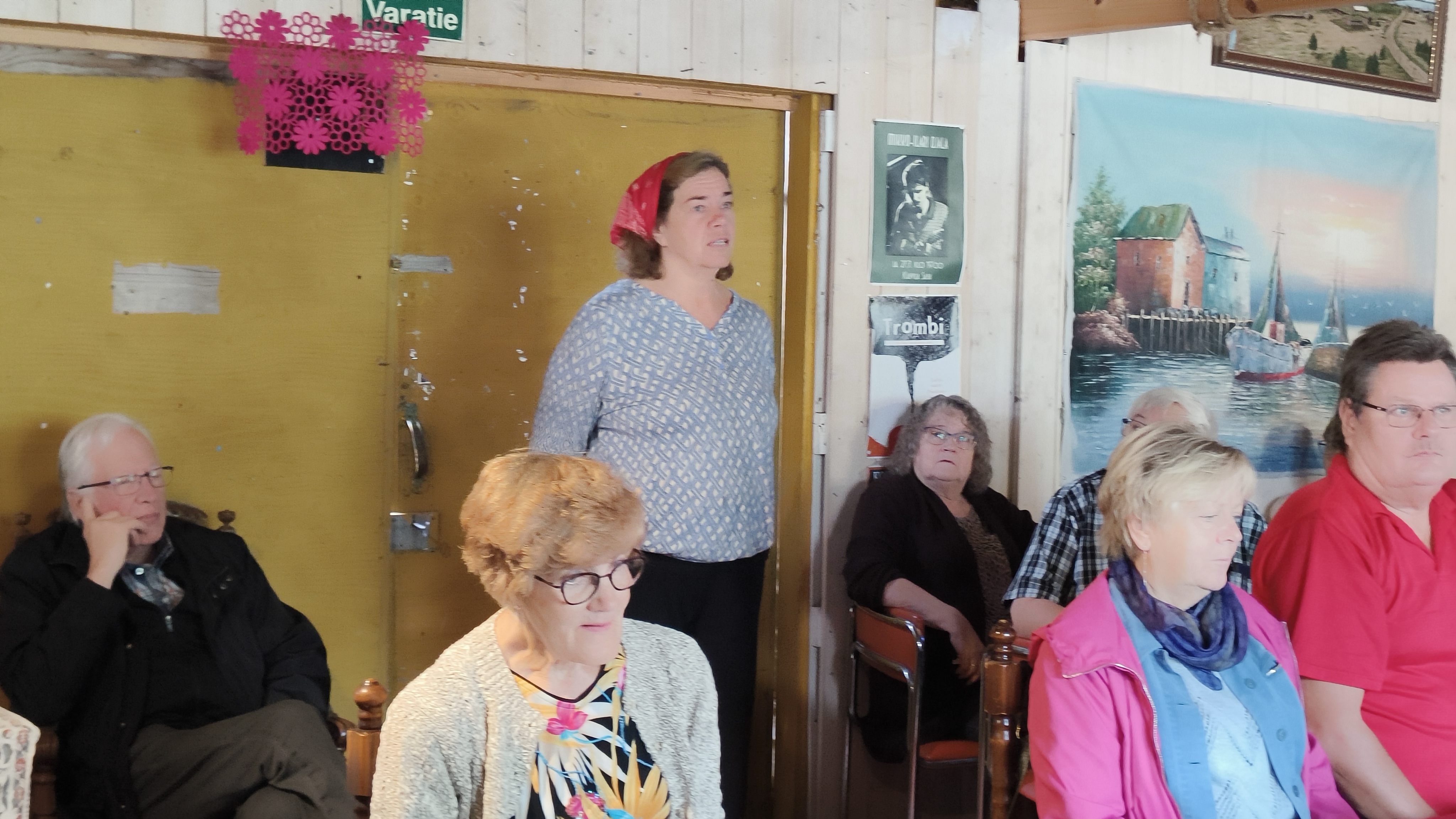 Lähes täysi bussilasti lähti kohti Kokkolaa, Sari toivotti kaikki tervetulleiksi ansaitulle matkalle ja kertoi päivän ohjelmasta: