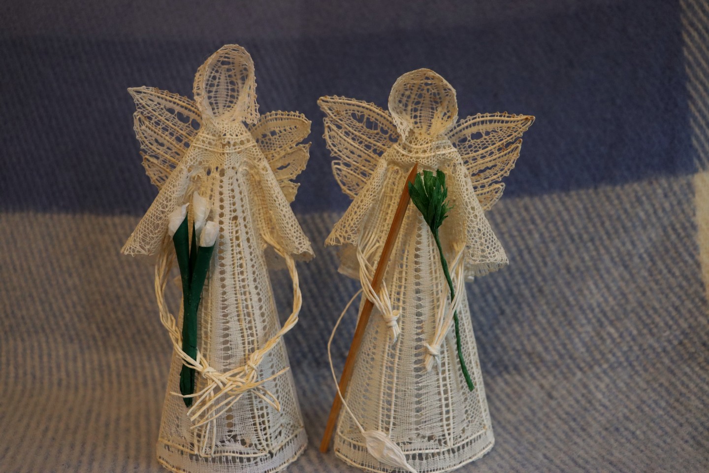 Upeat enkelit ovat olleet taidenäyttelyssä mukana.