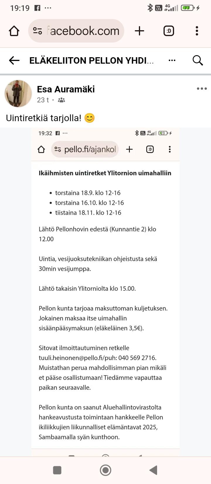 mm. laavuretket, kutsumme Pelloon vierailulle Kolarin ja Enontekiön eläkeläiset.