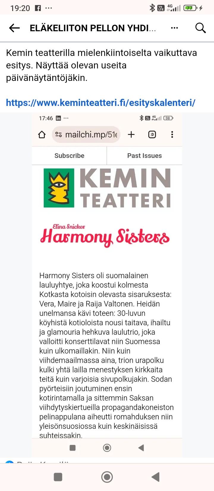 2. Kemin Teatteriretkelle (Väylä) mahtuu vielä. Lippujen varausvahvistus tehdään HUOMENNA pe 15.11. joten ilmoittautumiset viimeistään huomenna 15.11.24 ennen klo 10.