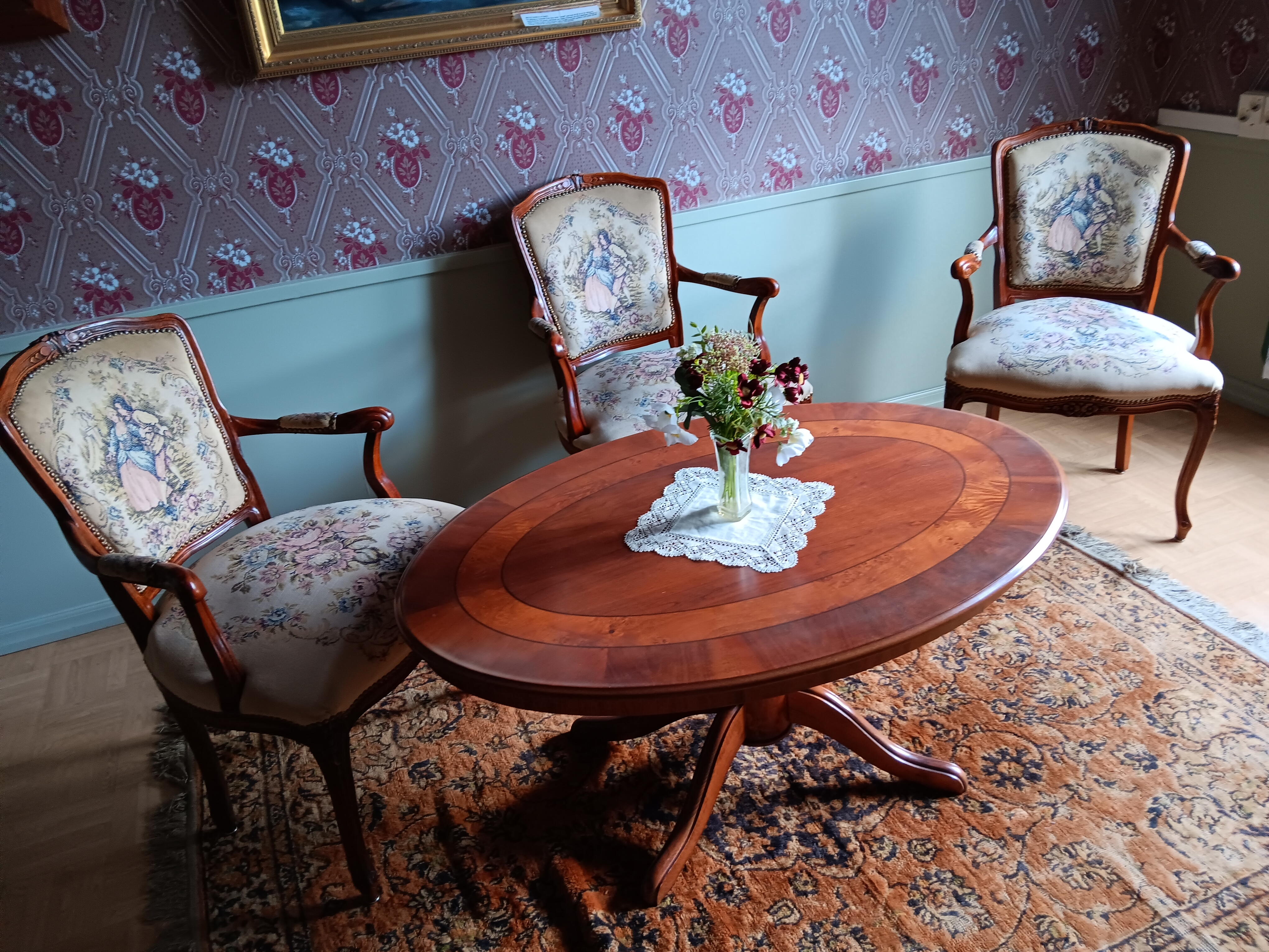 Aamusta lähdettiin kahdella bussilla, yllättäen Jepuan suuntaan ja jatkettiin Oravaisiin. Minne oikein oltiin menossa? Viimein tultiin Maksamaalle Tottesundin kartanoon. 1600- luvulla kreivi Claes Tott perusti kartanon, josta tuli myöhemmin Pohjanmaan everstien asuinpaikka. 1800- luvulla Vaasan läänin kuvernööri August Alexander Järnefelt vuokrasi aunnon kesähuvilakseen. Sen suuressa salissa vihittiin Järnefeltin tytär Aino ja säveltäjä Jean Sibelius avioliittoon. Sotien aikana siellä asui Karjalan evakoita. 1947 Maksamaan kunta osti kartanon kunnantaloksi. Monia vaiheita on hyvin hoidettu, nykyisin museona toimiva rakennus kokenut. Kartano oli monelle ensi kokemus.