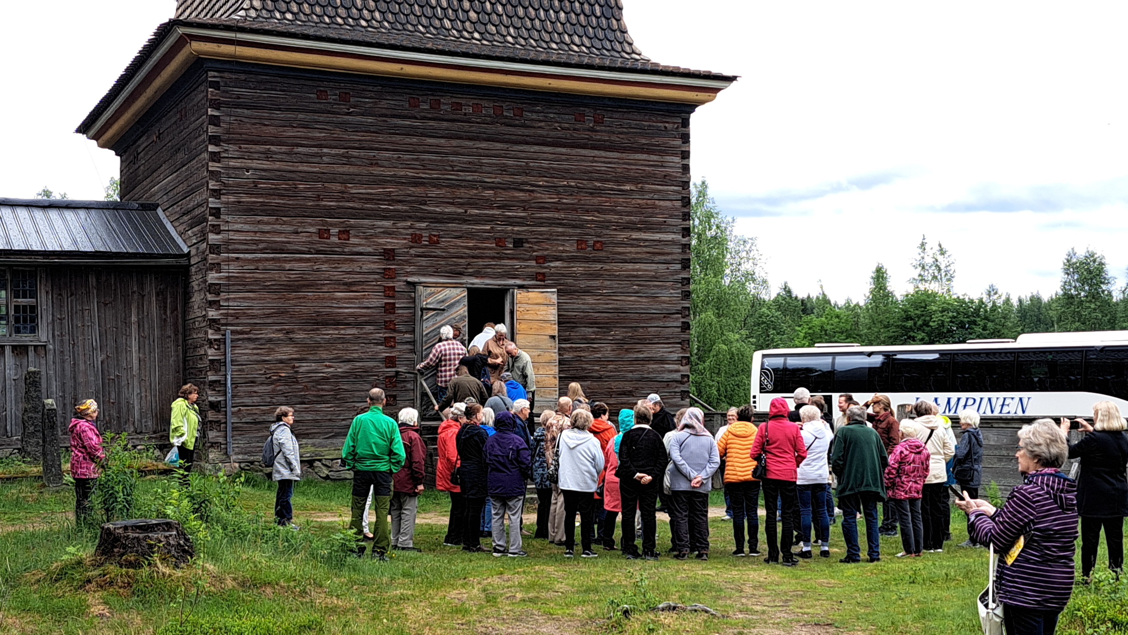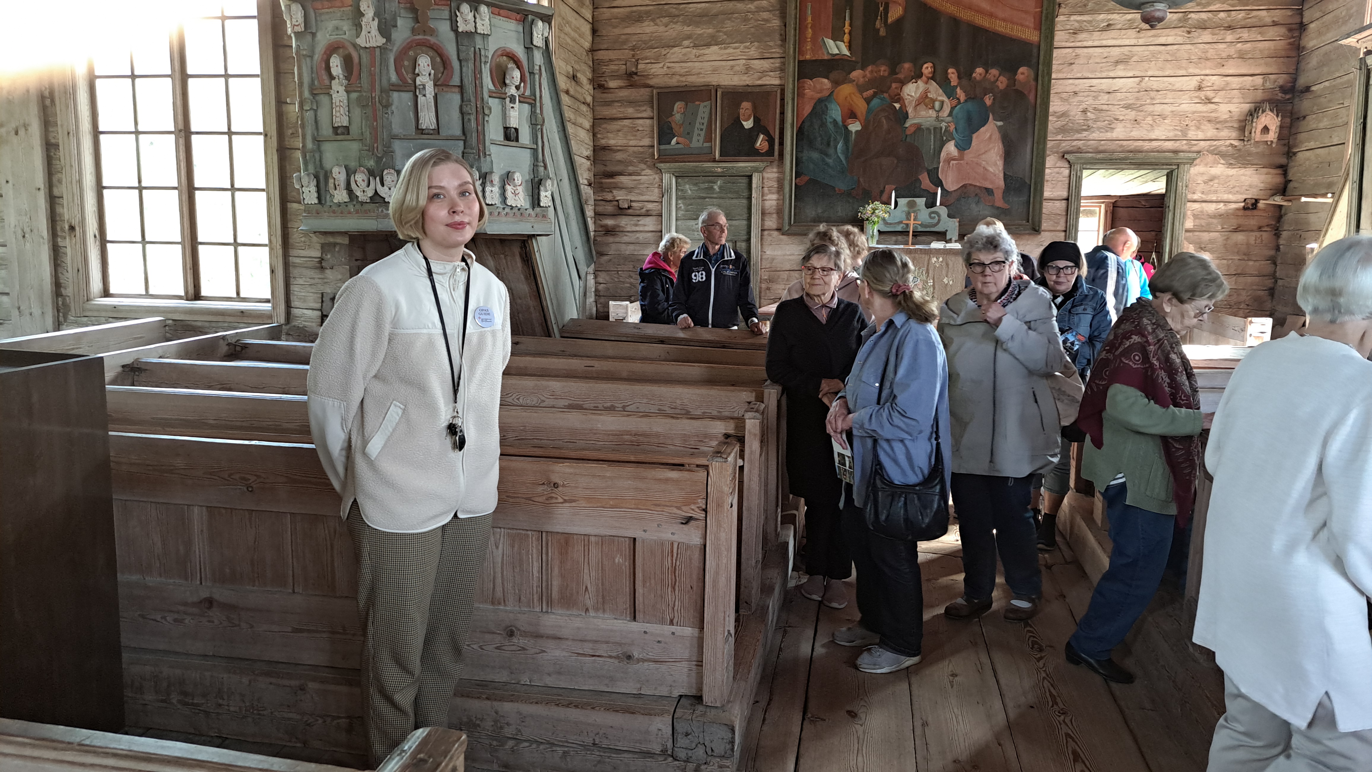 Sokkoretket aloitimme tieliikenne museolta Molemille sokkoretkille oli täydet autot Petäjäveden vanha kirkko oli toisena kohteena Kierrokset oli opastettuja Kolmantena kohteena oli uusi kirkko Uuden kirkon maalaukset oli upeita Maukas lounas nautittiin Lemettilän tilalla