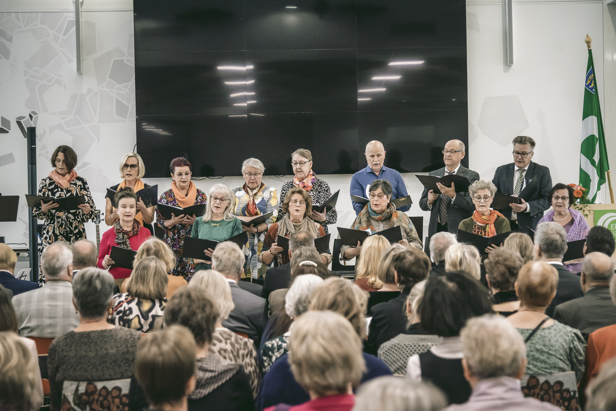 Tilaisuuden juontajana toimi leppoisaan tyyliin Mauri Tallberg. Mauri myös säesti ja johti lauluryhmäämme, joka avasi tilaisuuden Rauno Lehtisen sävellyksellä "Muuttuvat laulut".