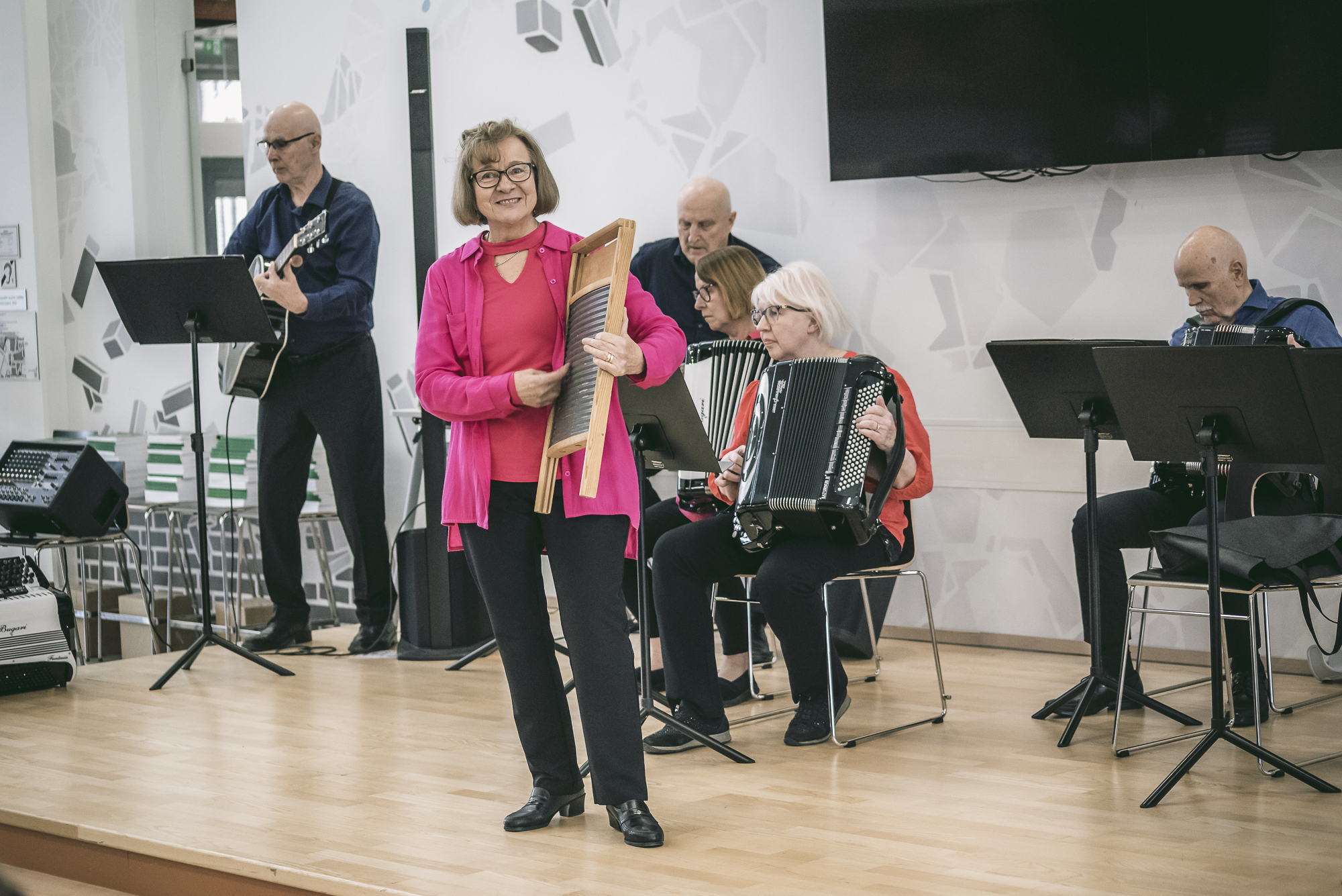 Harmonikkaorkesterimme Sirmakat esitti Sirkka Nevalaisen johdolla kaikkiaan neljä sävelmää. Helka Haapalainen hauskuutti yleisöä soittamalla myös pyykkilautaa.