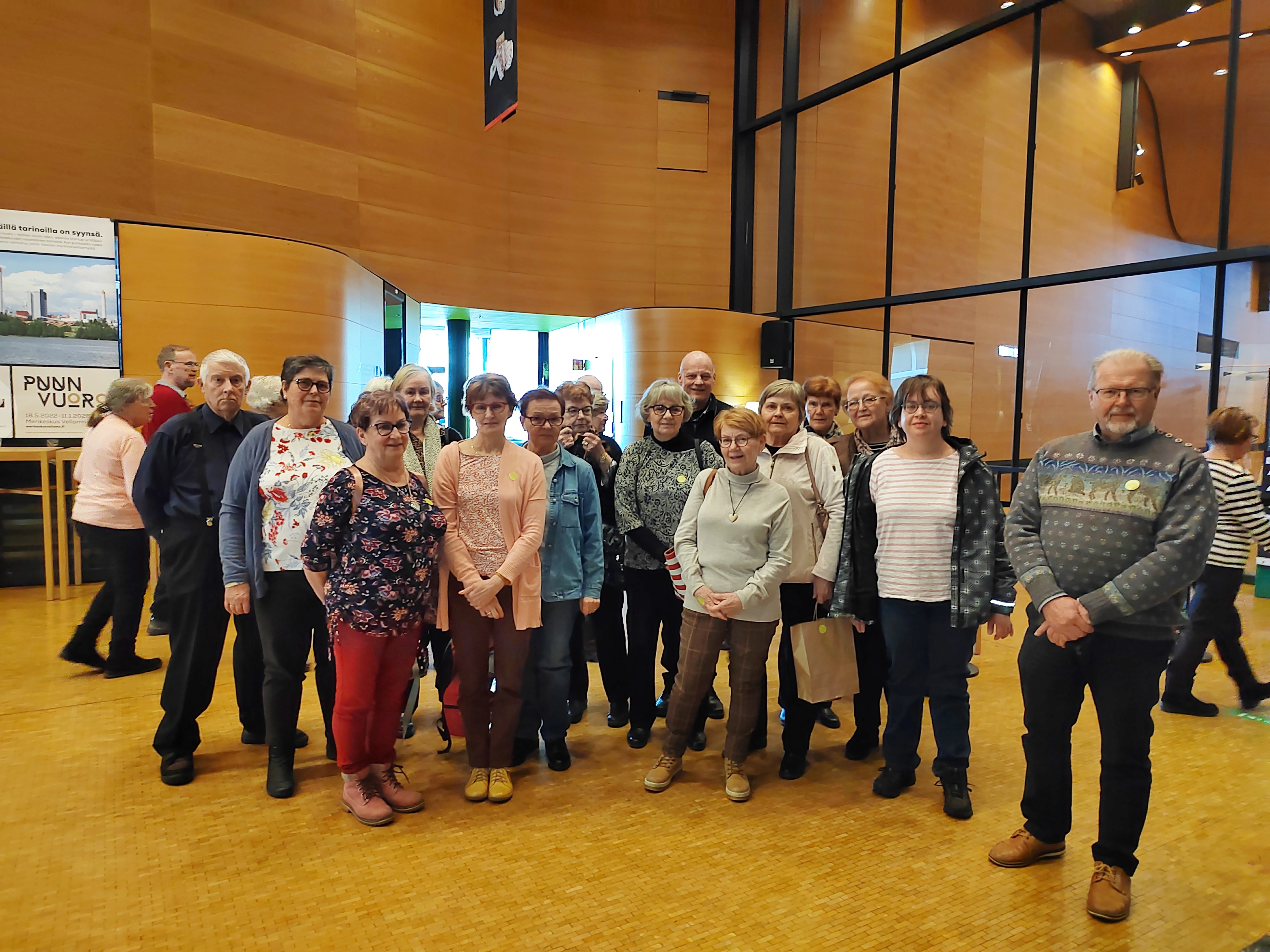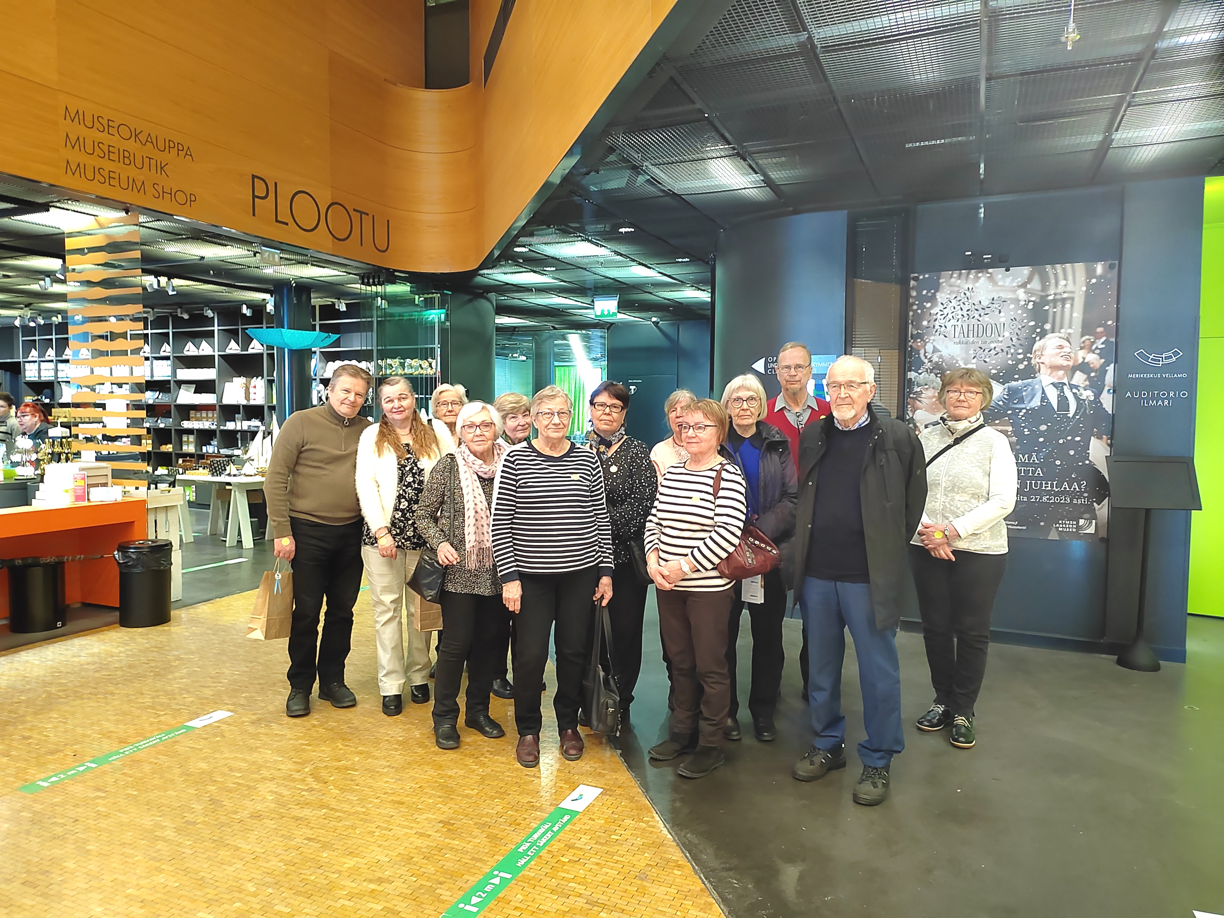 Kova puheensorina täytti bussin ja matka taittui nopeasti. Mennessä poikkesimme Porvoossa, Brunbergin makeismyymälässä. Siellä jokainen sai maistella ja ostaa tuliaisia kotiin. Matka jatkui ja saavuttuamme Kotkaan, olikin meitä jo vastassa opas ja kiertoajelu alkoi. Näimme kaupungin eri osia, vanhoja rakennuksia, puistoja ja merta, jotka nyt lepäsivät osittain vielä lumipeitteen alla ja tietysti saimme kuulla tarinoita historiasta ja nykypäivästä. Kierroksen jälkeen tapasimme viehättävän ja ihanan Kotkan Ruusun, joka tuli vierailulle bussiimme. Bussin täytti nauru hänen kertoessaan elämästään valoisasti ja erittäin hauskasti. Lopuksi vielä kuulimme Veikko Lavin laulamana Kotkan Ruusun. Sitten olikin lounaan vuoro, jonka nautimme ravintola Laakonkissa. Mahat pullollaan jatkoimme kierrosta itse Vellamossa oppaan kanssa, joka johti meidät mahtaville interaktiivisten näyttelyiden äärelle. Kierroksen jälkeen oli pieni kahvitteluhetki ja sitten olikin vuorossa jo kotiin lähtö. Meno sujui mallikkaasti kuljettaja Artun turvallisessa matkassa. Aurinkoinen Kotka oli näin talvellakin viehättävä matkailukohde ja varmasti saa monet lähtemään sinne uudelleen.