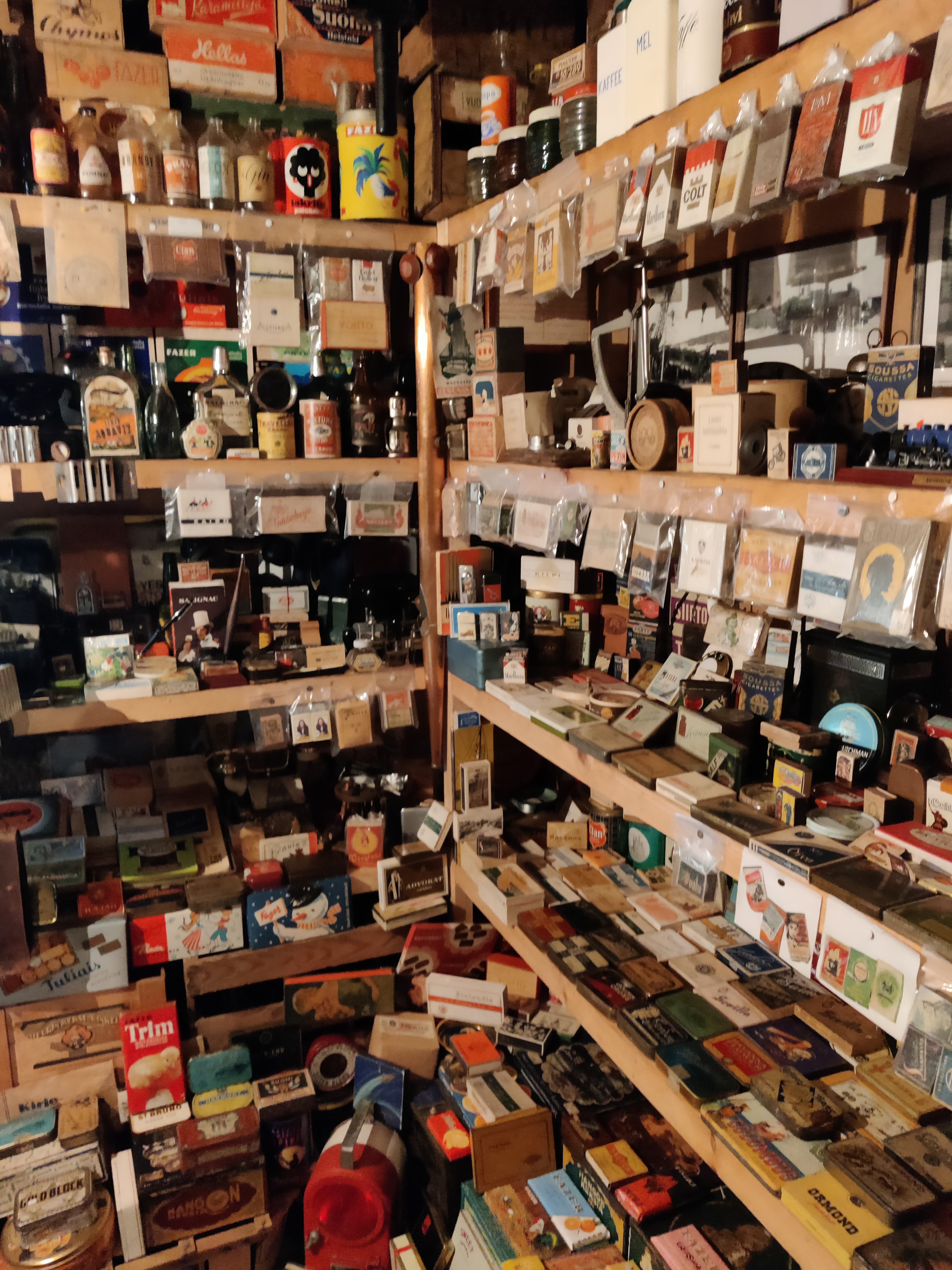 kauppapuotien tavaraa, kahvipurkkeja ja