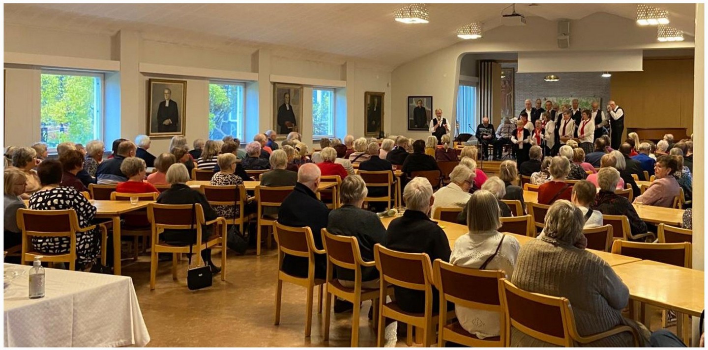 Eläkeliitto Lohjan yhdistyksen Lauluryhmä Päikkäri esiitymässä Seniorifoorumissa Lohjan seurakuntatalolla. Petra Lindeberg oli puhumassa edunvalvonnasta ja testamentista, alasivulla linkki.