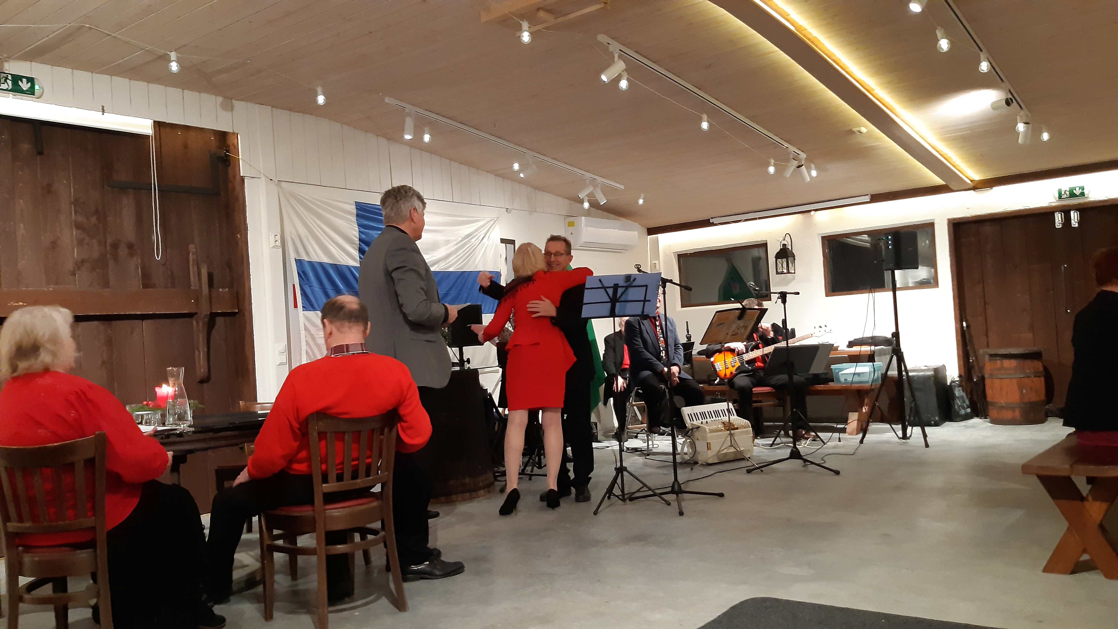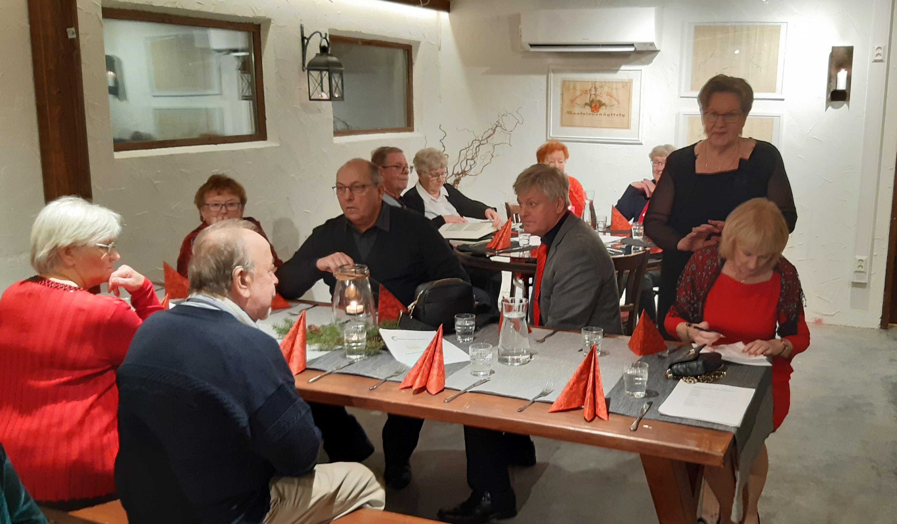 Olipa meillä mukava juhla Jukkolan navetan juhlatilassa. Jäsenistämme liki 40% mukana, kiitos teille. Laulettiin joululauluja Ajomiesten ja Juha Orjalan säestyksellä, kuultiin Heikin kertomana historiikki sekä kiitokset nykyisestä toiminnasta ja Matti Uusirauvan hieno juhlapuhe. Saimme nauttia maistuvasta ruuasta josta meille kertoi emäntä Eija Jukkola. Saatiin jutella ja nauraa, nauttia yhteisestä hetkestä joulukiireiden keskellä mukavassa seurassa. Irene jakoi luottokuljettajallemme Arille lähes runosanoin kiitokset. Heikille maistuvaa suklaata ja Pirjo, Irene ja Leena saivat kiitoksena toiminnasta lahjakortin jalkahoitoon, saatesanoin; jaksaa jatkossakin liikkua :)