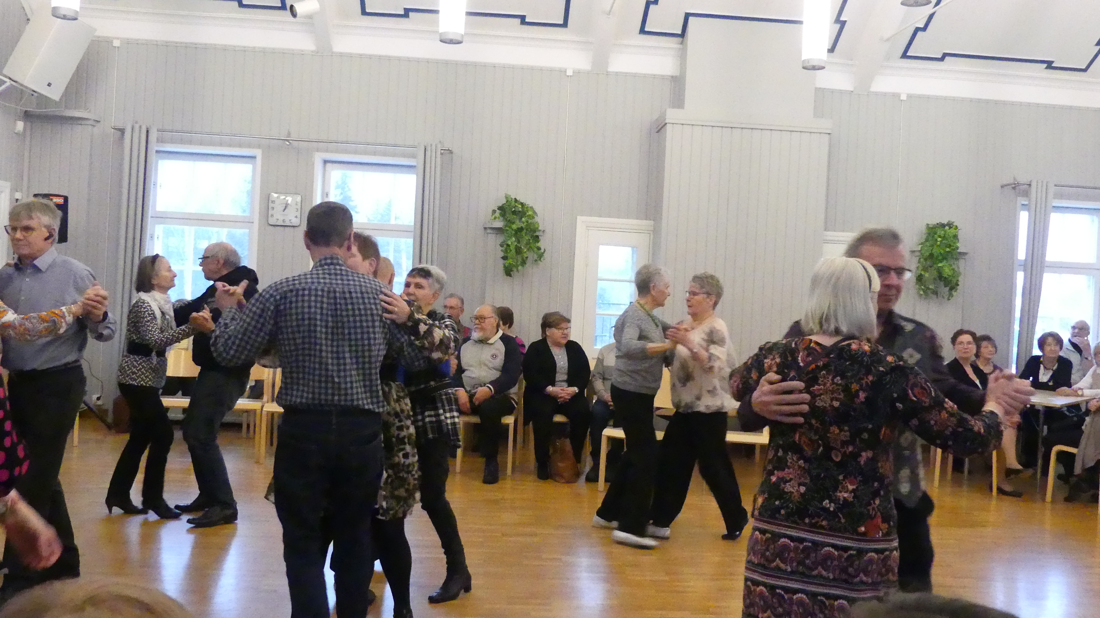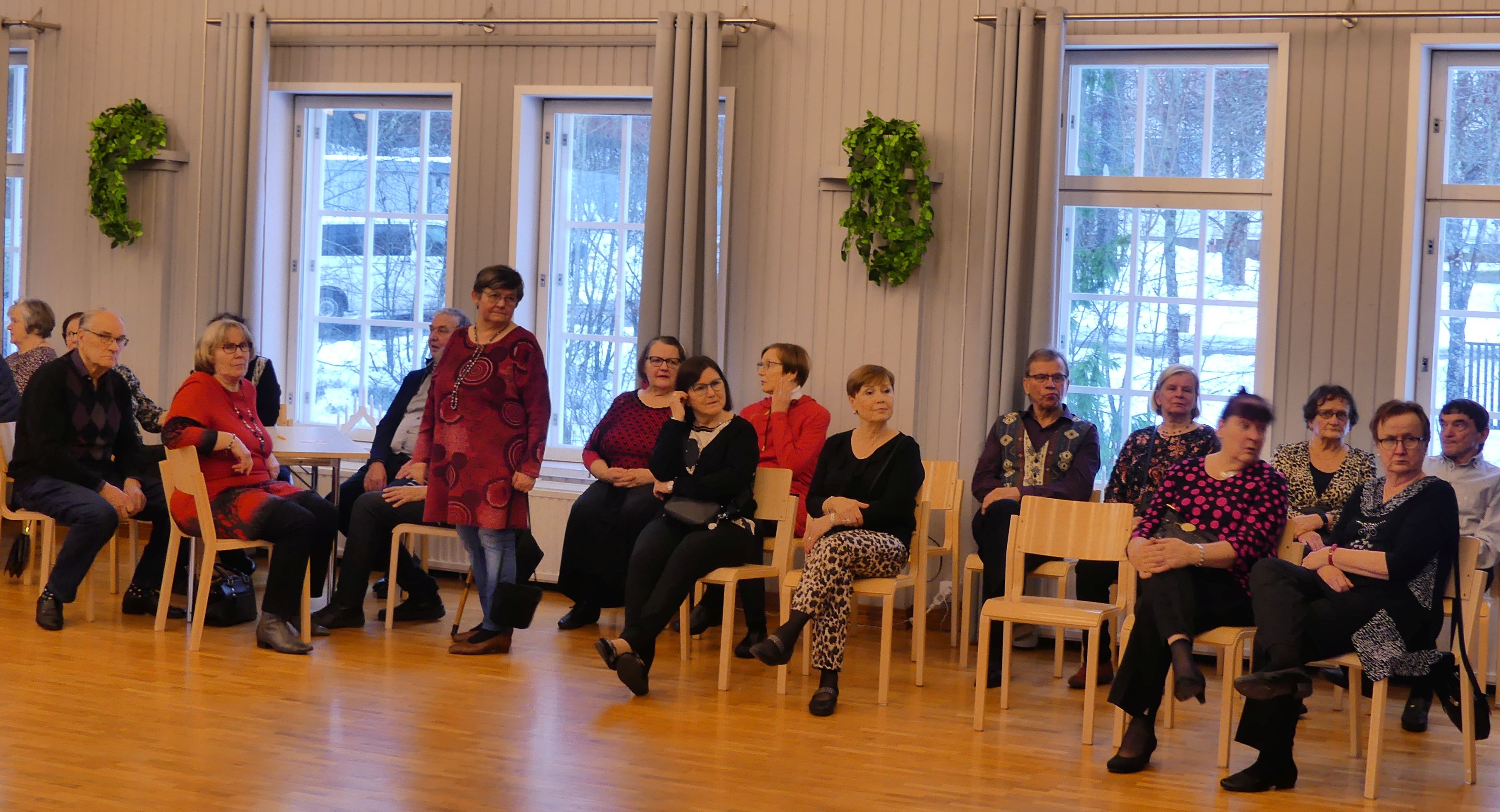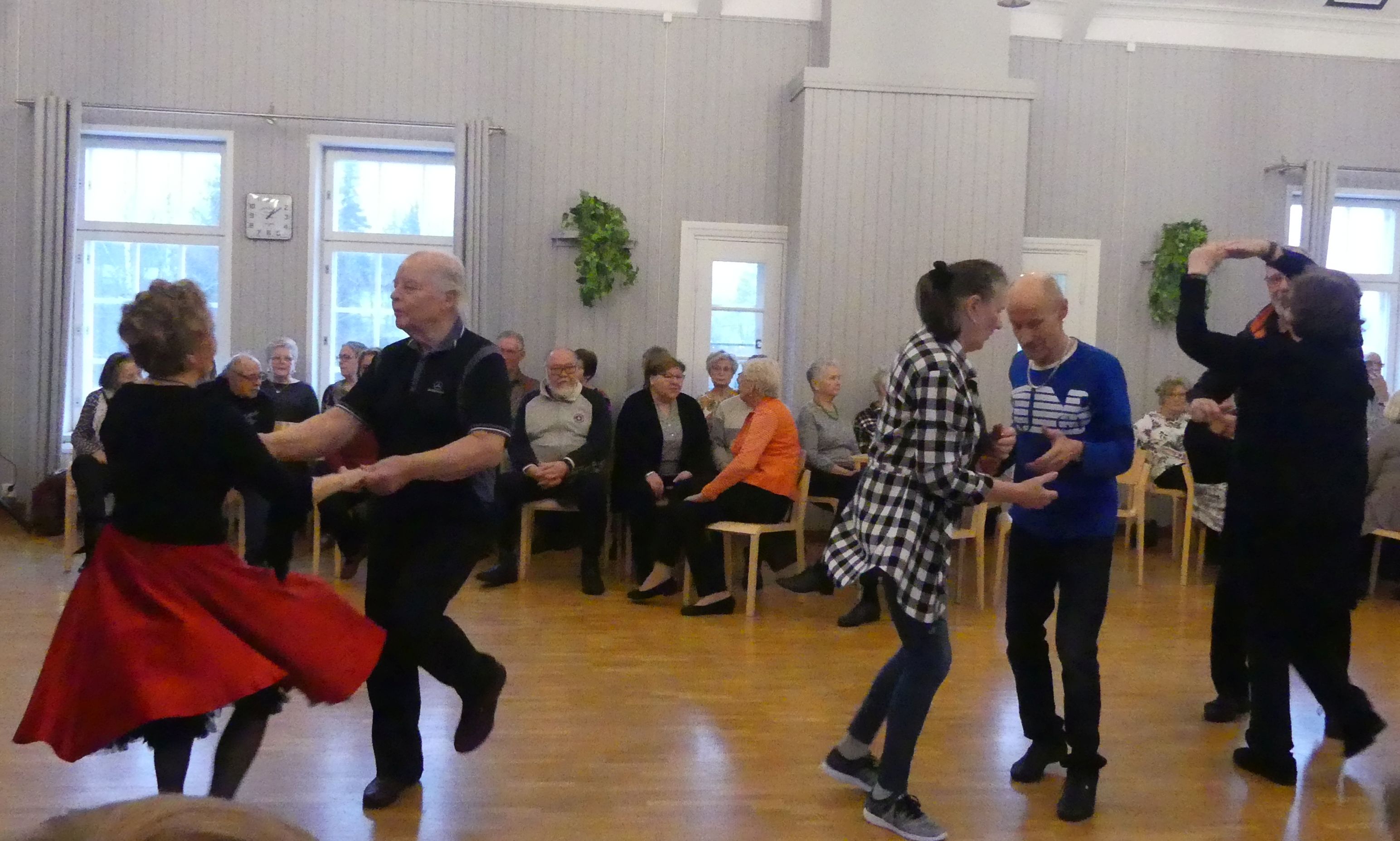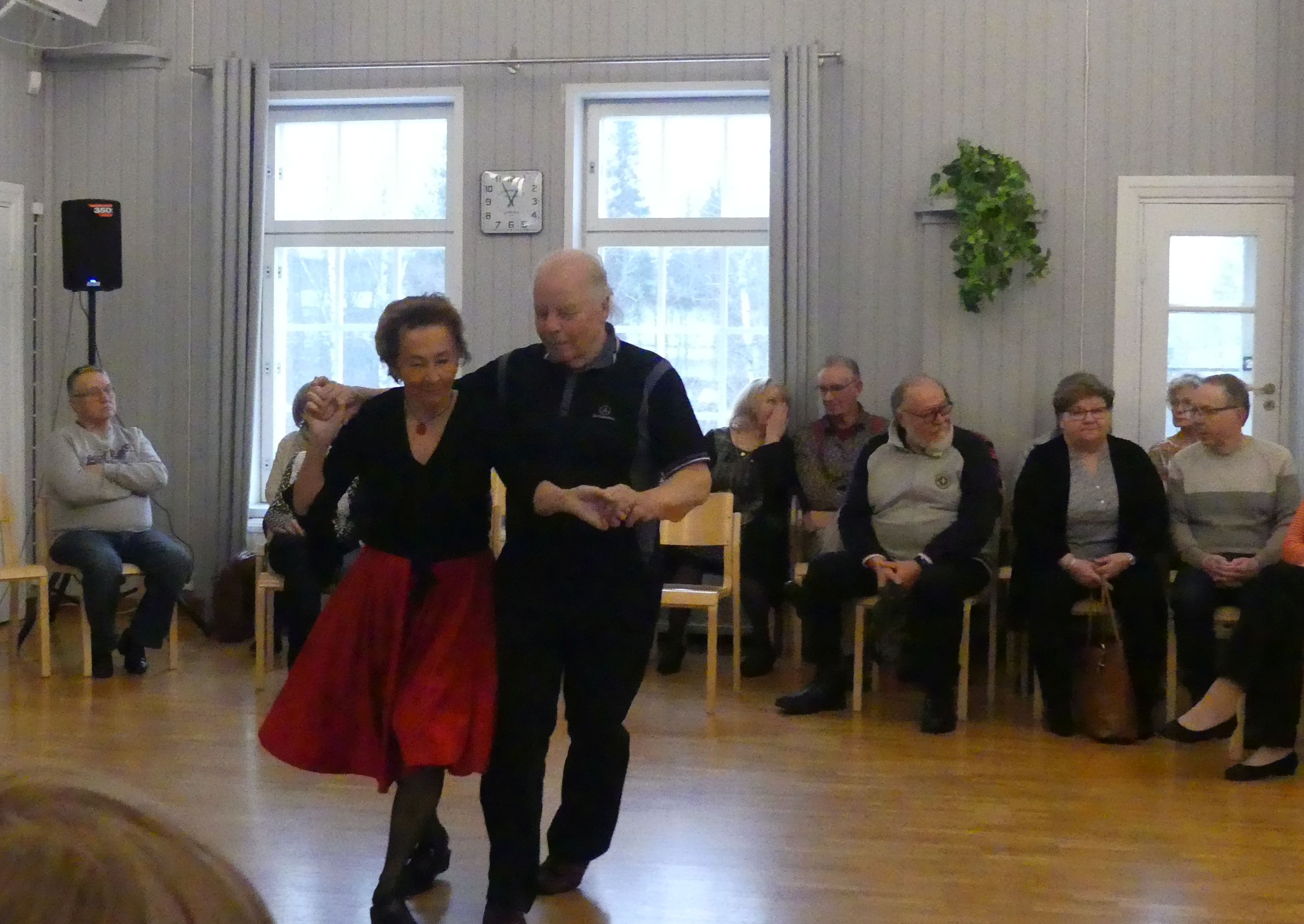 Väkeä paljon, iloisia kasvoja, puhetta ja naurua, tanssilattia täynnä. Naisethan ovat aina luontevasti tanssineet keskenäänkin kavaljeerin puuttuessa, ja niin nytkin. Yhdistyksen loistavat karaokelaulajat monipuolisine lauluineen takasivat viihtymisen, eikä ulkopuolista esiintyjää kukaan kaivannut. Hyvä ”massatapahtuma” kahveineen ja pullineen, seurusteluineen, oli siis samoja elementtejä kuin seurakuntakeskusten kuukausikerhoissa, mutta meno oli toisenlaista. Kiitos tilaisuuden järjestämisestä!