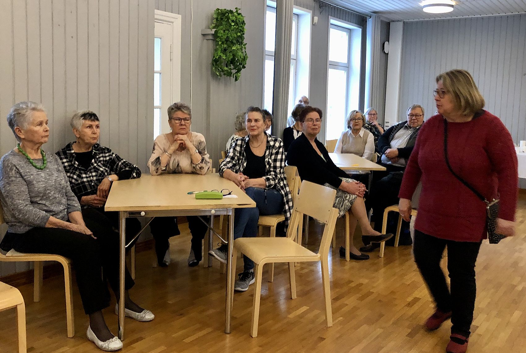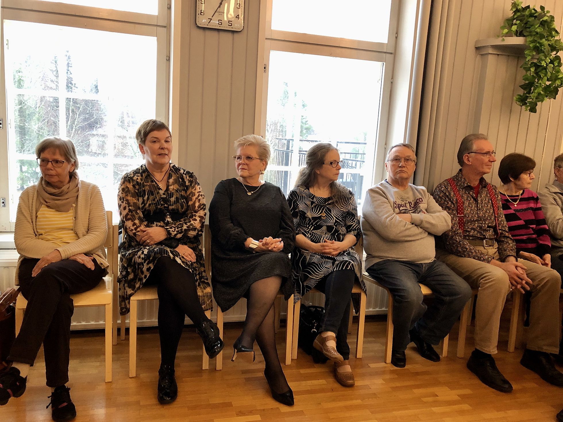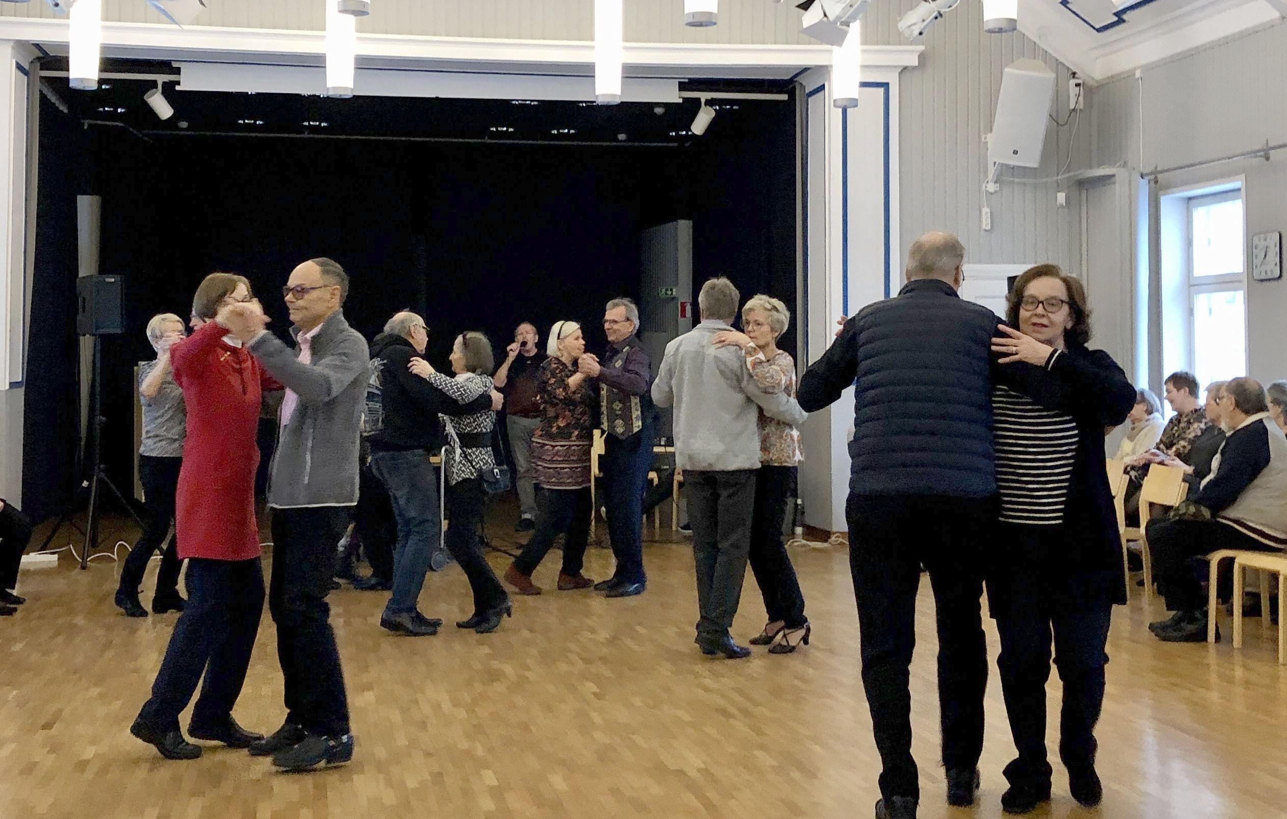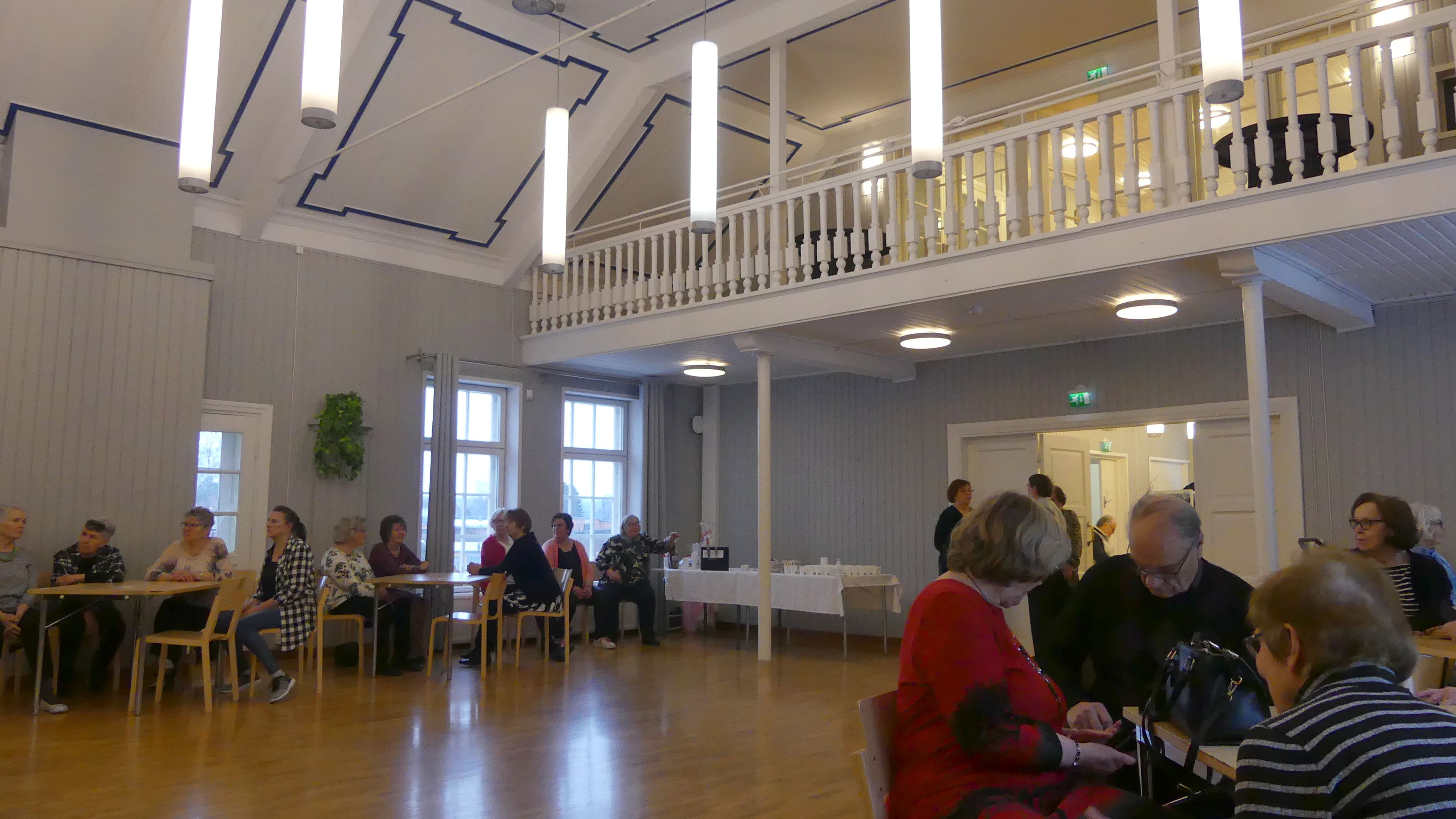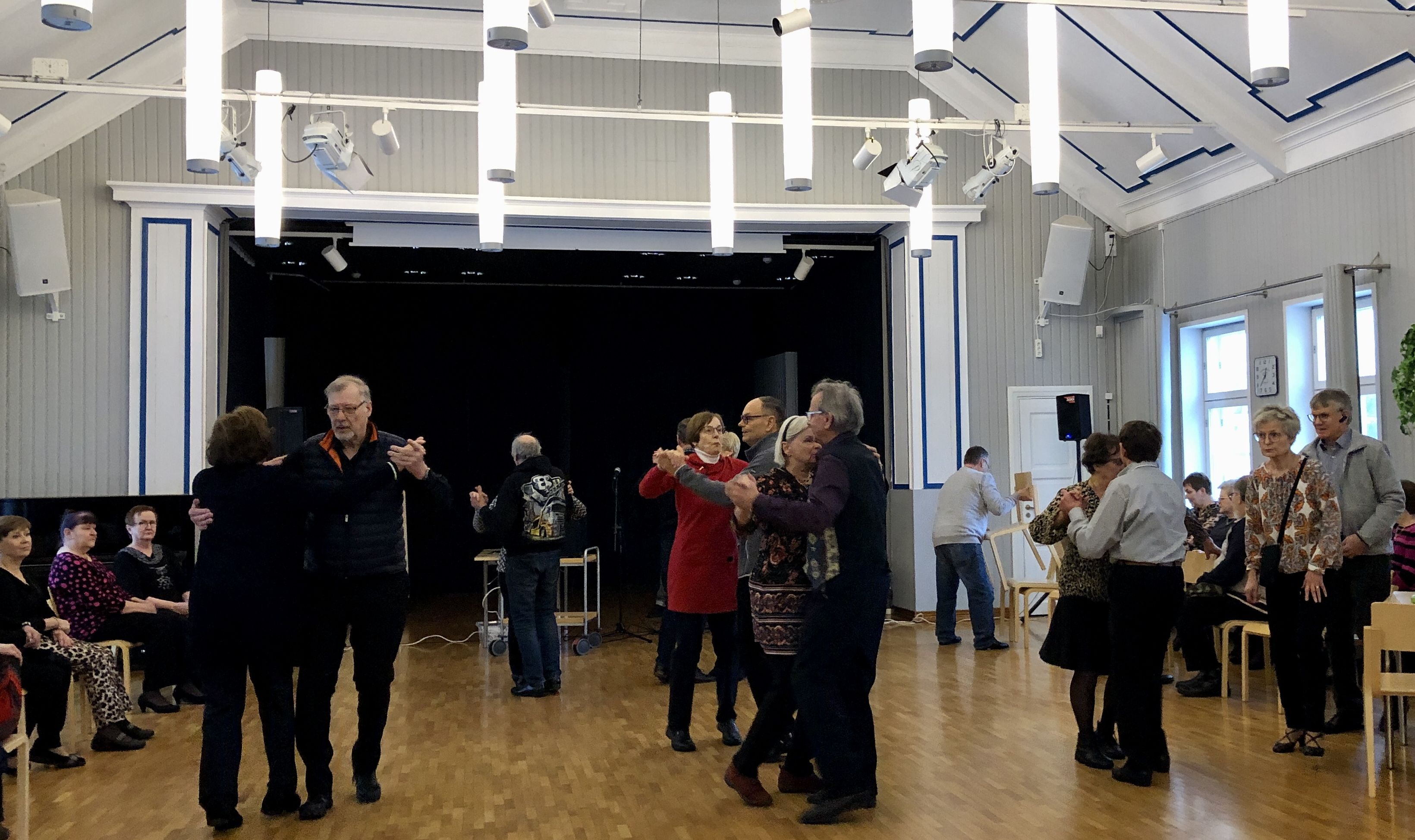 Väkeä paljon, iloisia kasvoja, puhetta ja naurua, tanssilattia täynnä. Naisethan ovat aina luontevasti tanssineet keskenäänkin kavaljeerin puuttuessa, ja niin nytkin. Yhdistyksen loistavat karaokelaulajat monipuolisine lauluineen takasivat viihtymisen, eikä ulkopuolista esiintyjää kukaan kaivannut. Hyvä ”massatapahtuma” kahveineen ja pullineen, seurusteluineen, oli siis samoja elementtejä kuin seurakuntakeskusten kuukausikerhoissa, mutta meno oli toisenlaista. Kiitos tilaisuuden järjestämisestä!