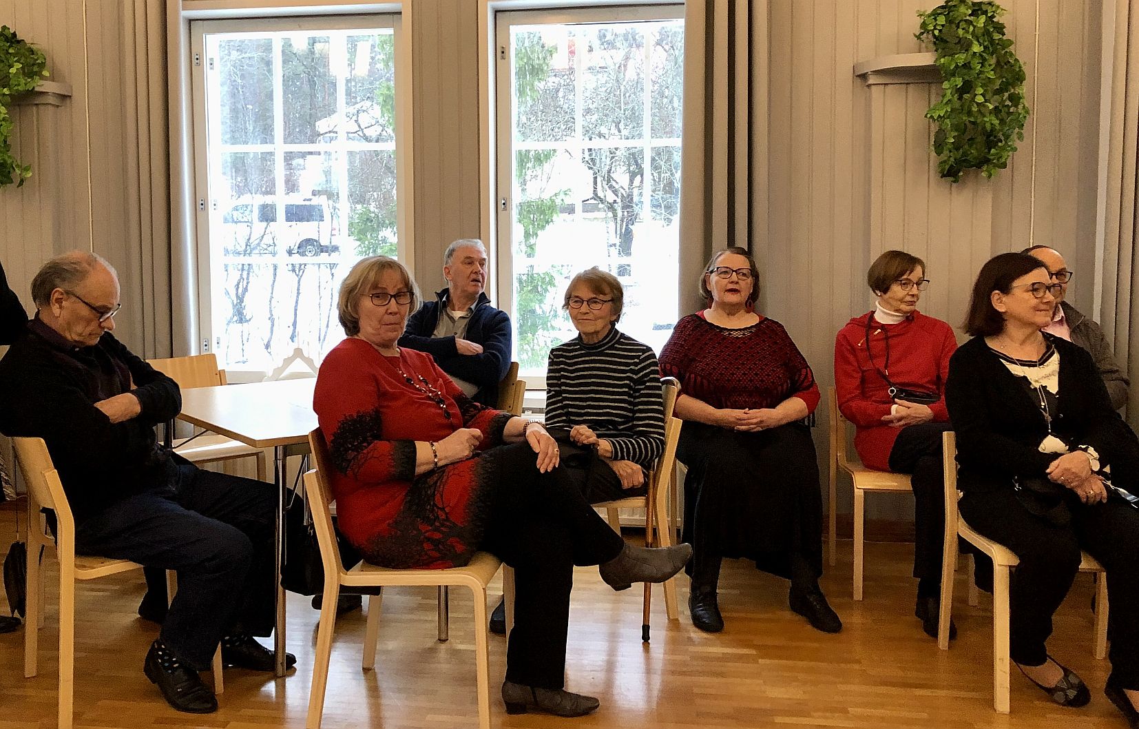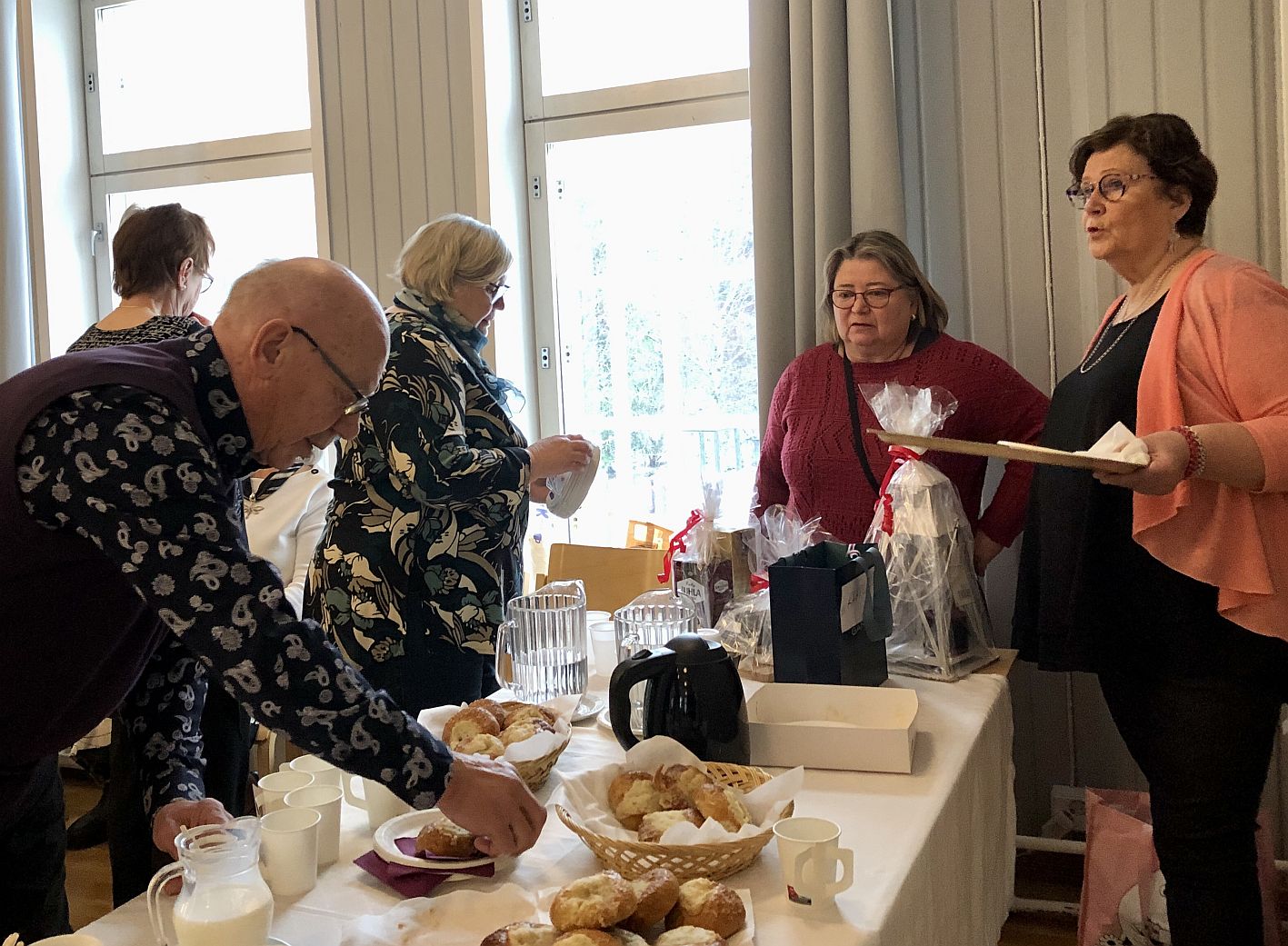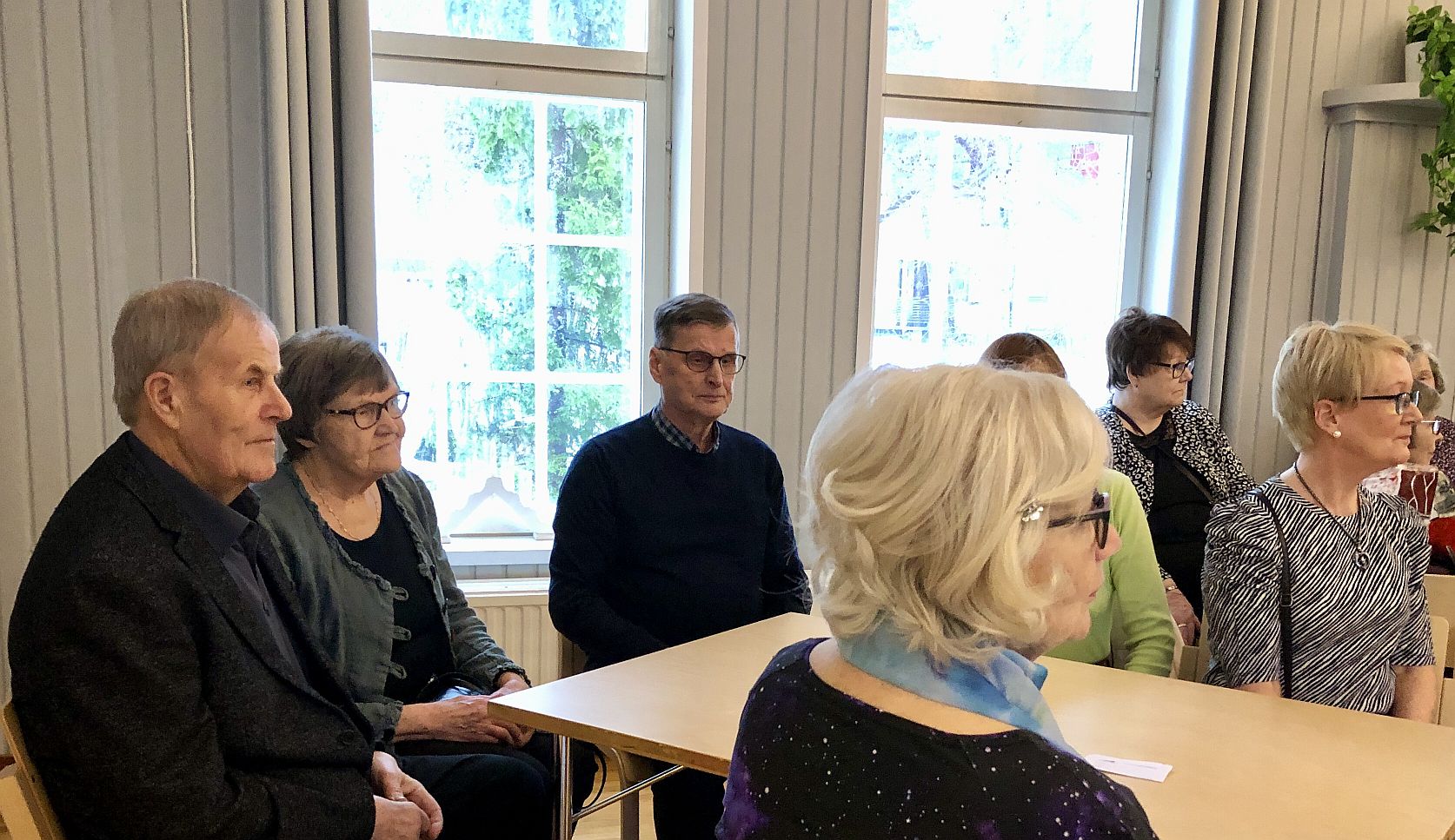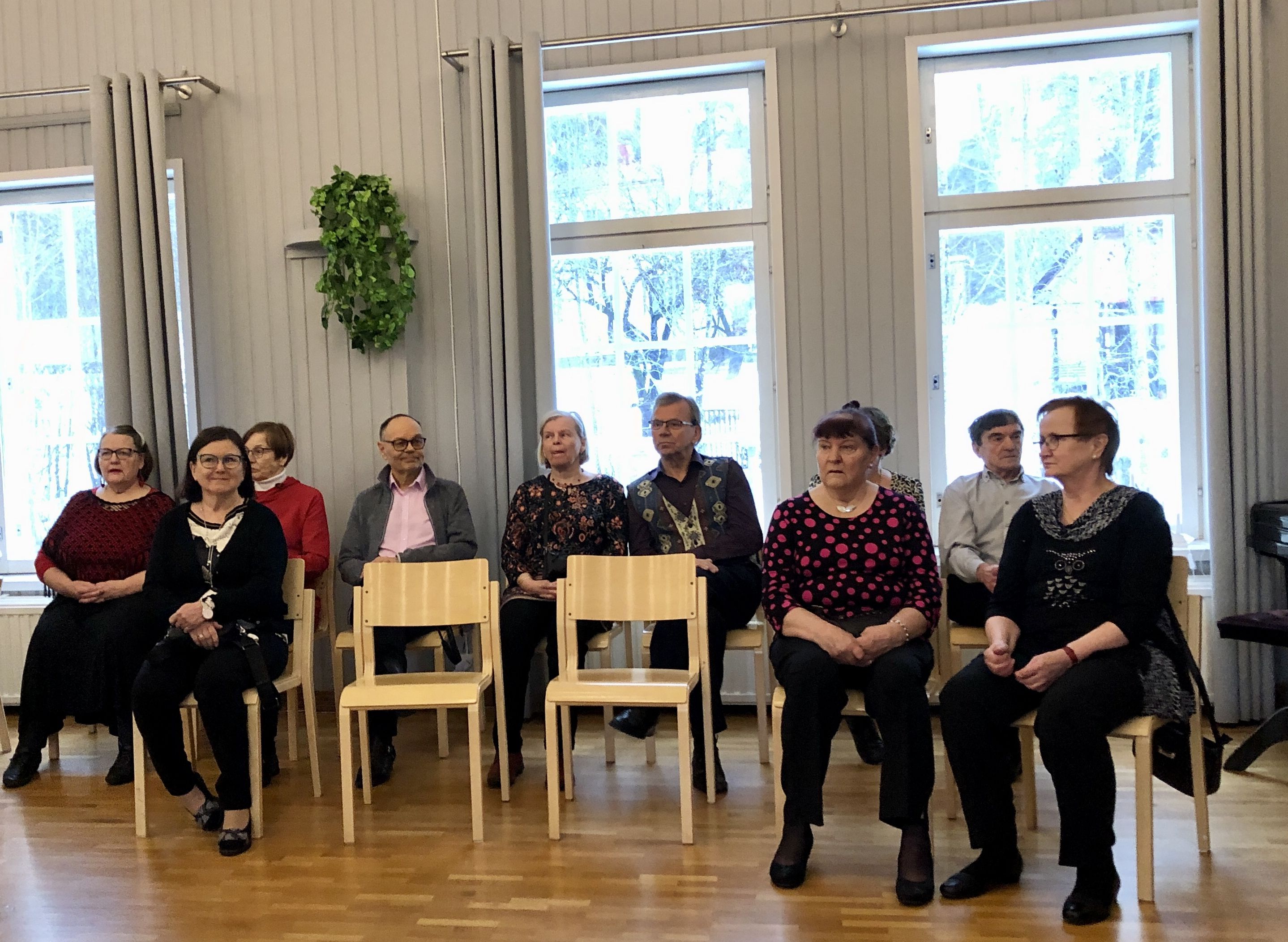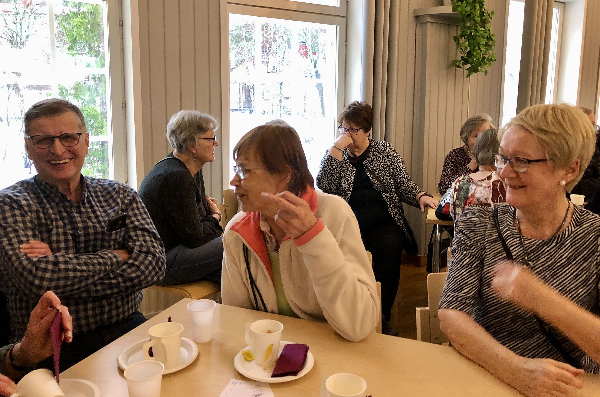 Väkeä paljon, iloisia kasvoja, puhetta ja naurua, tanssilattia täynnä. Naisethan ovat aina luontevasti tanssineet keskenäänkin kavaljeerin puuttuessa, ja niin nytkin. Yhdistyksen loistavat karaokelaulajat monipuolisine lauluineen takasivat viihtymisen, eikä ulkopuolista esiintyjää kukaan kaivannut. Hyvä ”massatapahtuma” kahveineen ja pullineen, seurusteluineen, oli siis samoja elementtejä kuin seurakuntakeskusten kuukausikerhoissa, mutta meno oli toisenlaista. Kiitos tilaisuuden järjestämisestä!