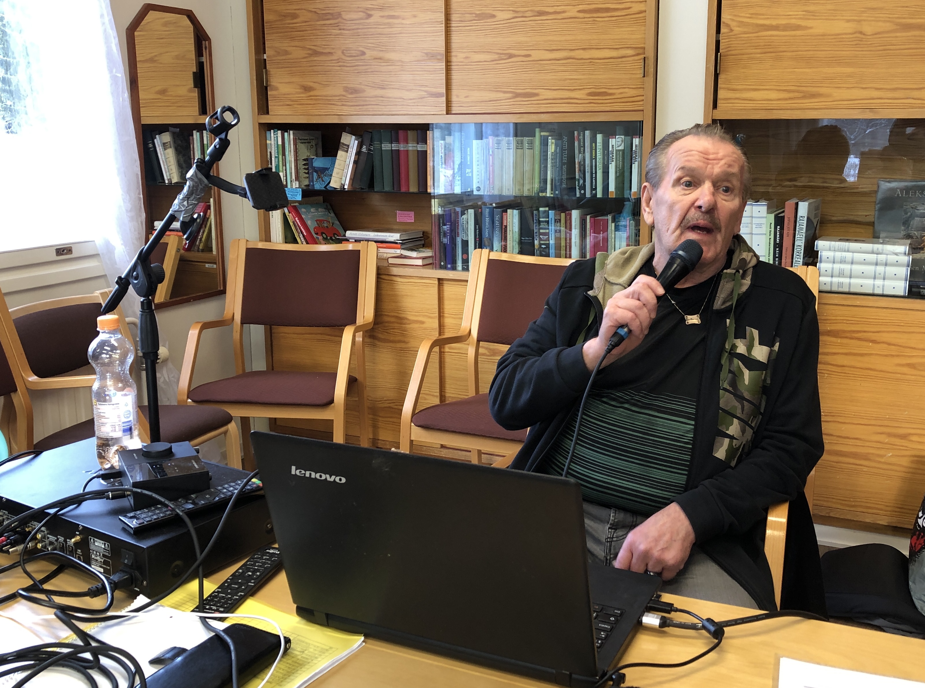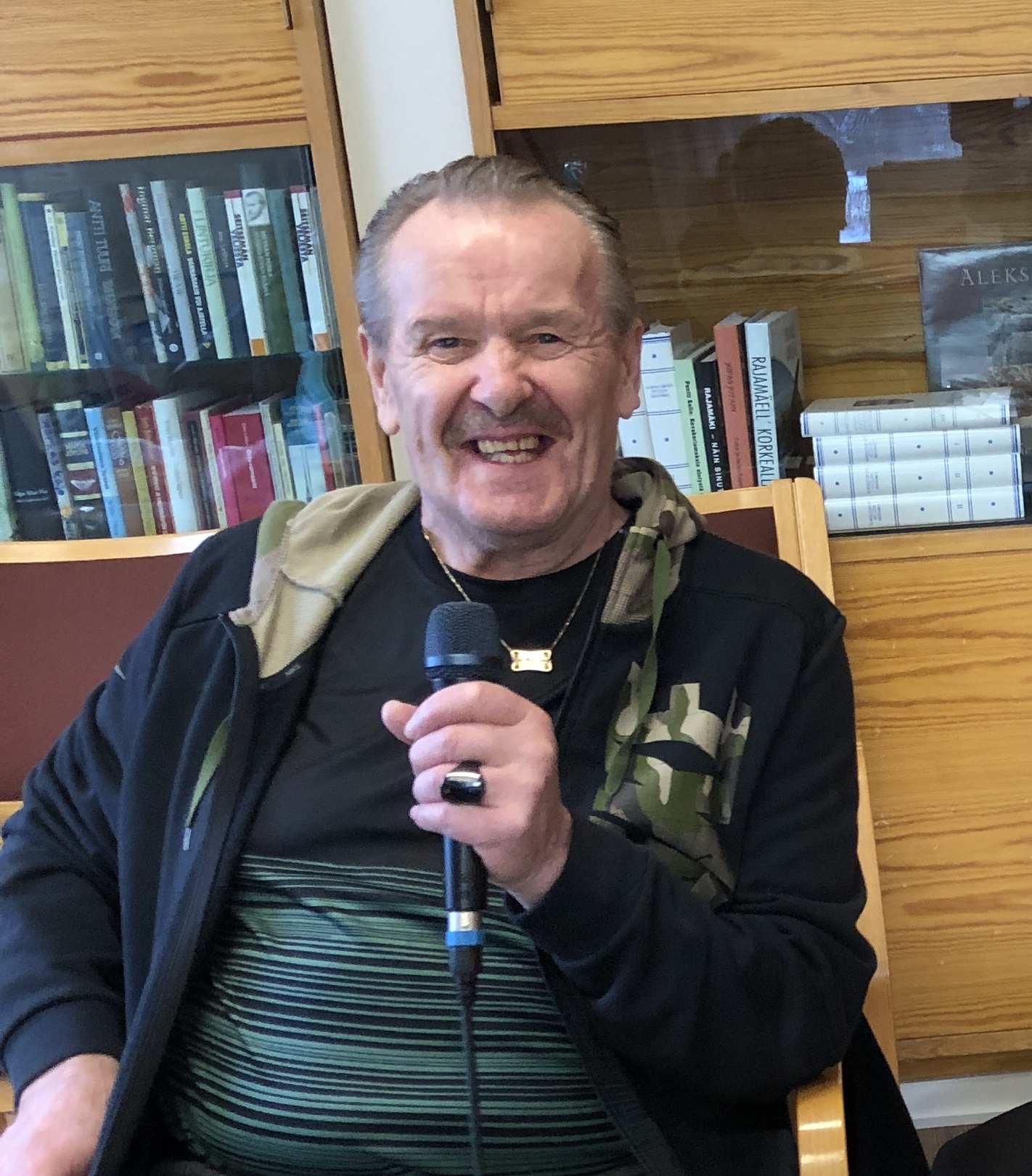 Urho Vilmunen vetää Rajamäen karaokekerhoa. Urho saapui paikalle jo hyvissä ajoin pistämään pelit ja vehkeet paikalleen. Alkajaisiksi Urho toivotti kaikki tervetulleiksi, ja tarttui itse ensimmäisenä mikkiin. Sen jälkeen laulajia riitti, myöhemmin tulijoitakin vielä yhteiskuvan oton jälkeen.
