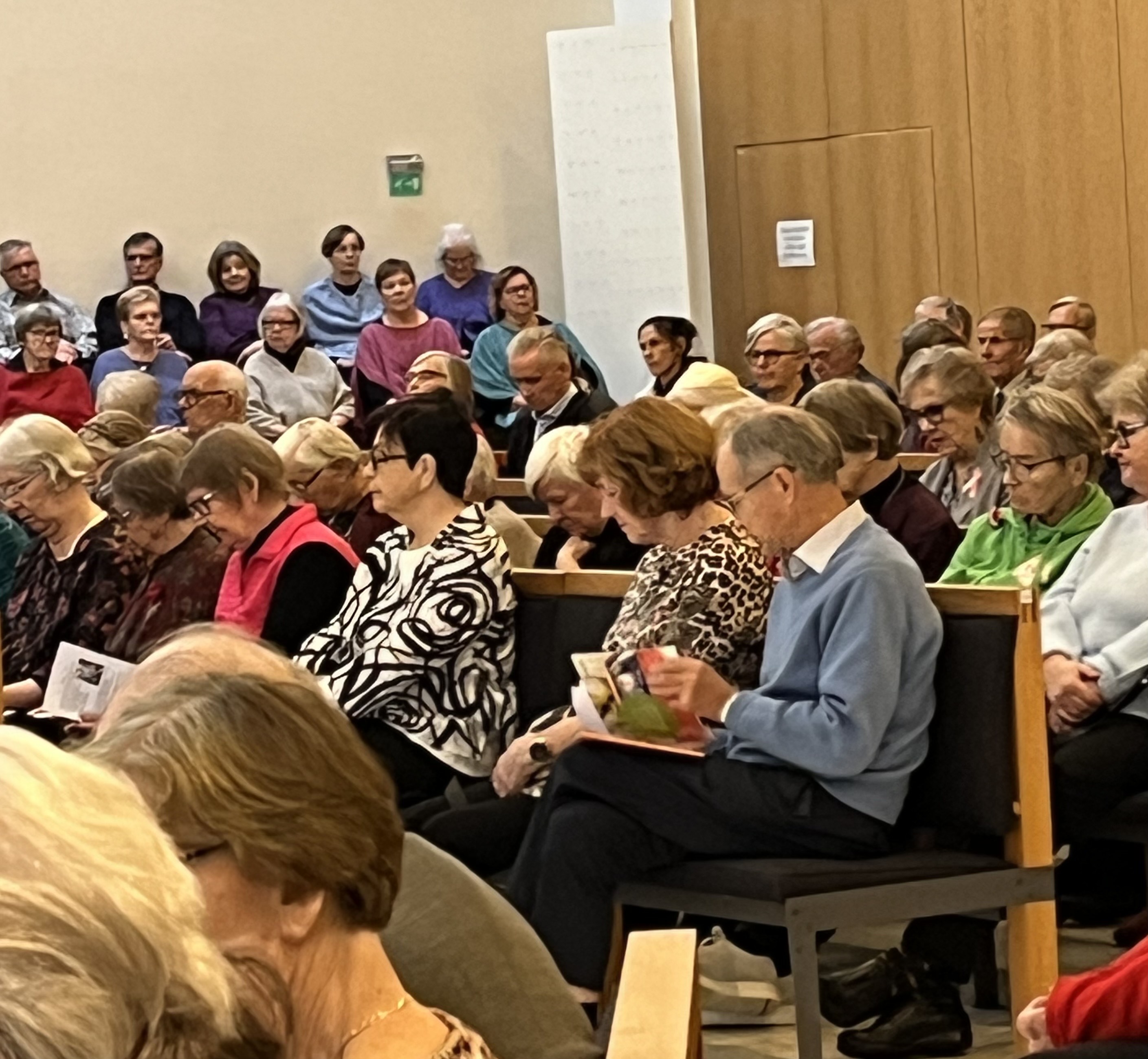 Klaukkalan kirkossa pidettiin jälleen vanhustenviikon Nurmijärven pääjuhla. Parkkipaikka täyttyi, ja Korsisaaren bussit kuljettivat juhlaväkeä Rajamäeltä ja Kirkonkylältä sateisessa säässä.