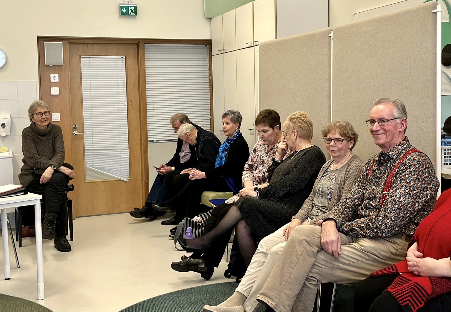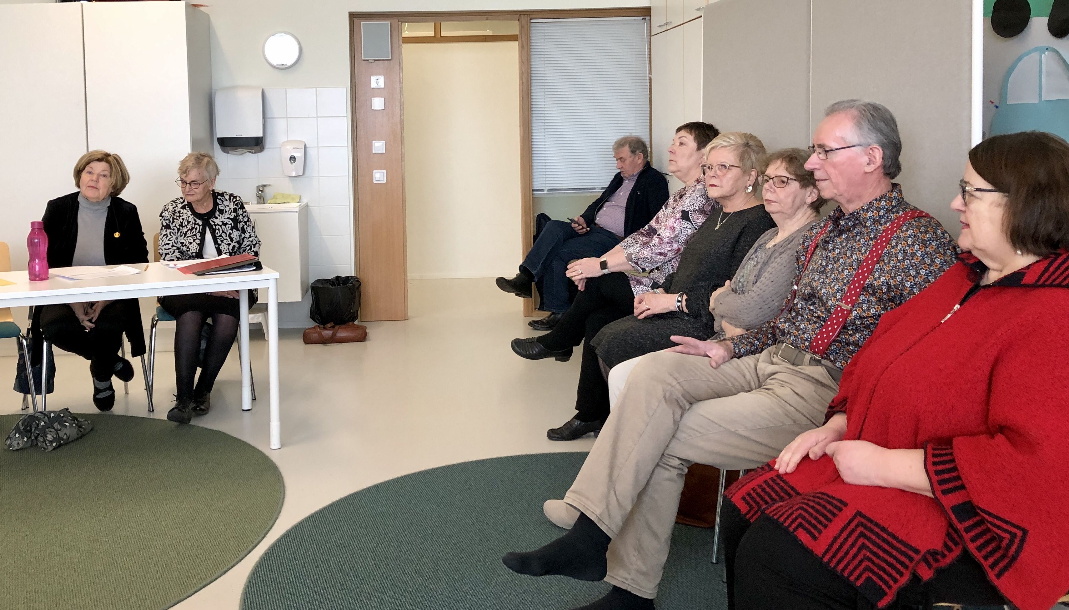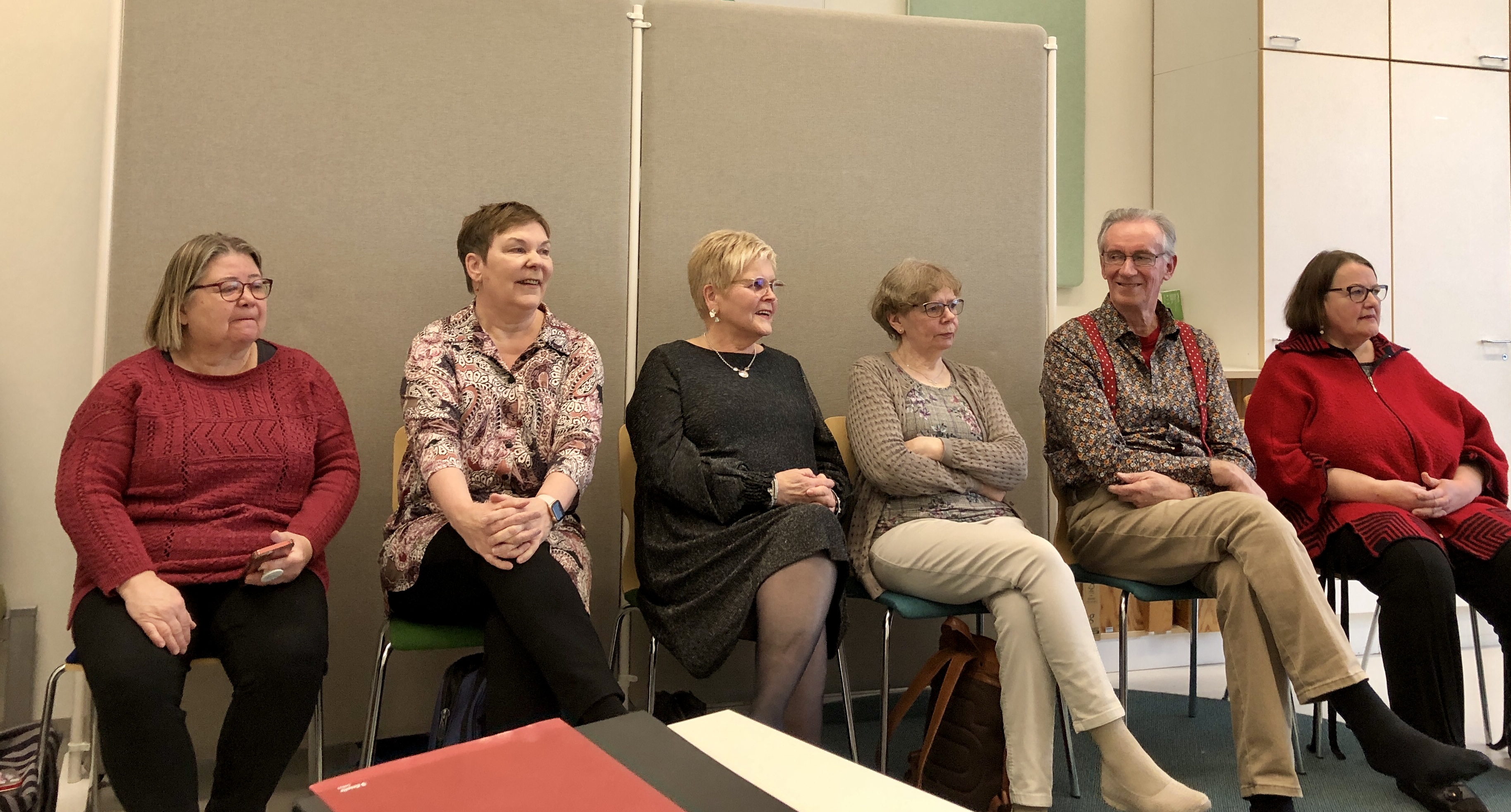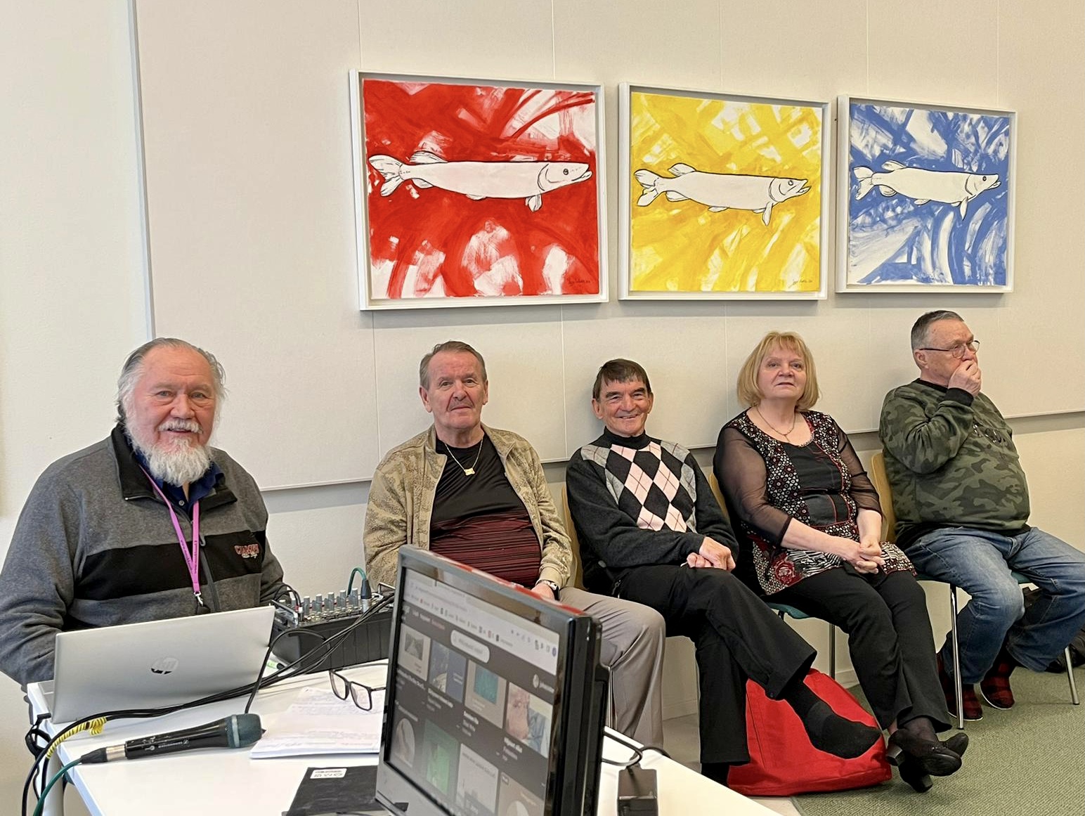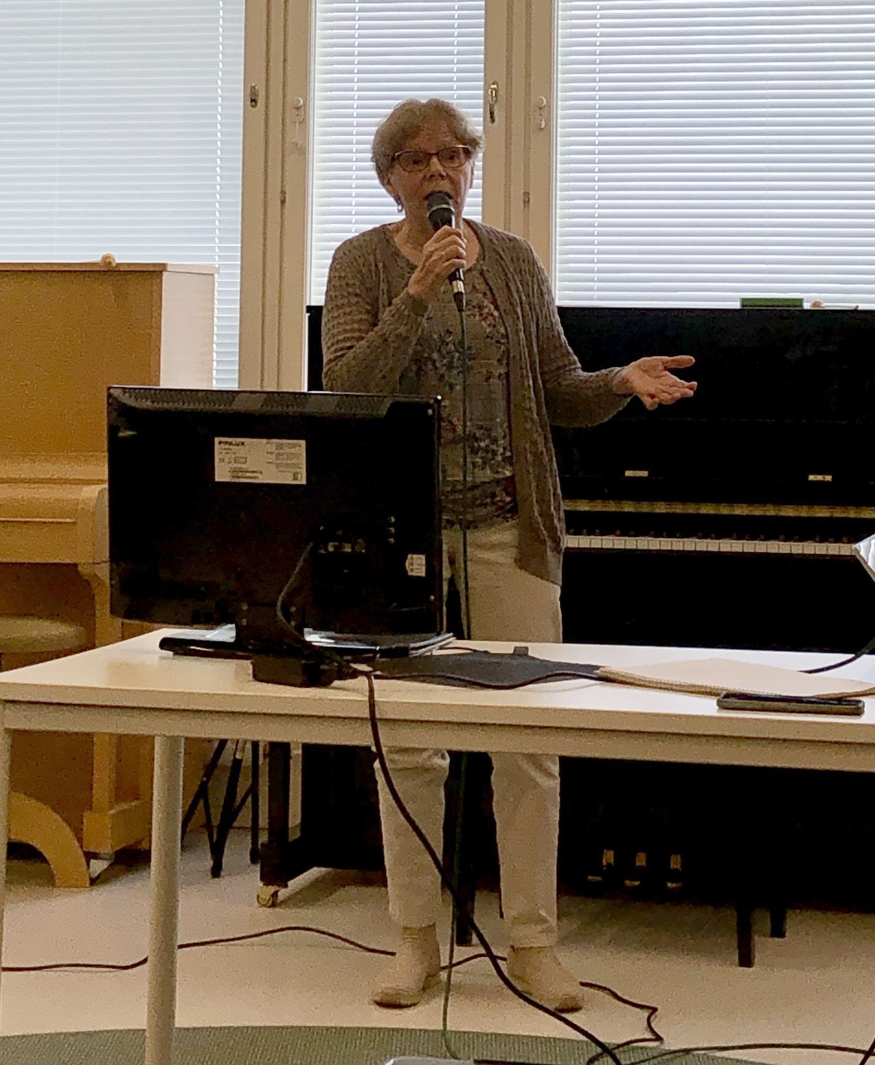 Klaukkalan Monikon Piccolo-sali täyttyi puolilta päivin keskiviikkona 29.3., kun yhdistyksen karaokekarsintoihin ilmoittautuneet laulajat asettuivat seinustoille sijoitettuihin tuoleihin, tuomarit ja sihteerit pöytänsä taakse ja kisoja isännöivä Jussi Stenberg laitteineen oman pöytänsä ääreen. Yleisöäkin oli kourallinen kannustamassa, joukossa yhdistyksen pj. Margit Taponen.