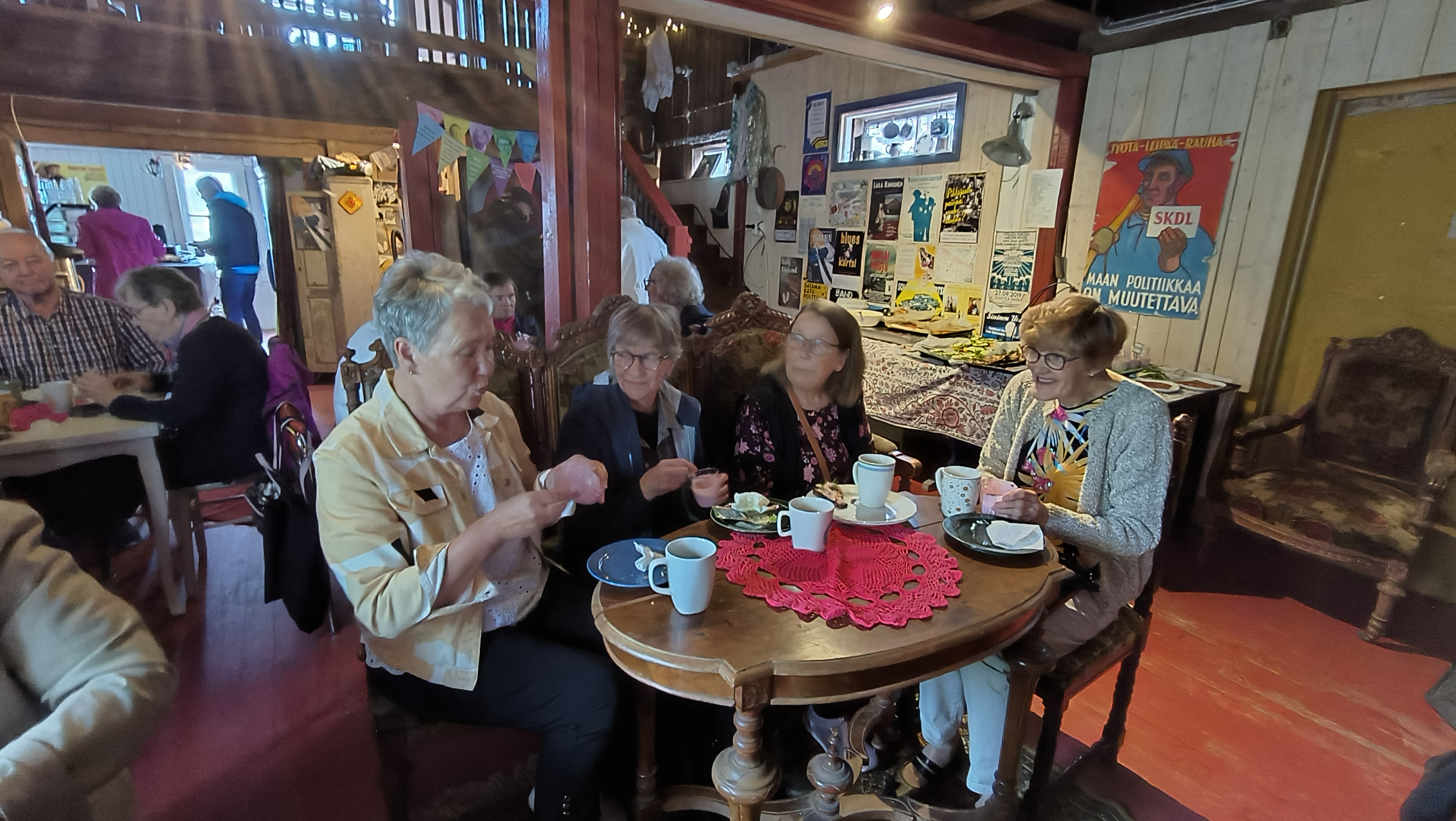 Yllätyksellinen oli aamupala sahan miljöössä, sitten valtava tehdaslue josta ei ole kyllä pajon tietoa ollut eikä sinne yksittäisellä henkilöllä mitään asiaa ole ollutkaan. Mielenkiintoinen oli myös Merimieskirkon tarina ja Hickarön lounas.... PoroPirttikin oli täysi yllätys mutta myönteisellä tavalla ja siitähän riittää paljon kerottavaa sellaisille jotka eivät matkalle mukaan päässeet.